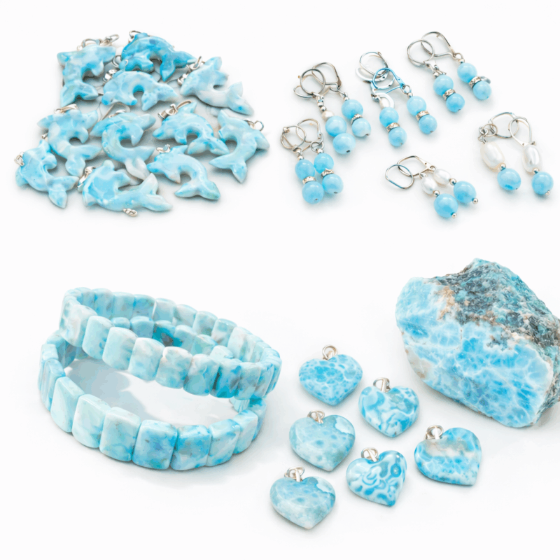 Prívesky z pravého Larimaru, vzácneho kameňa pochádzajúceho výhradne z Dominikánskej republiky. Každý kus je originál s jedinečnou kresbou tyrkysovo-modrých odtieňov, pripomínajúcich pokoj mora a karibskú energiu.