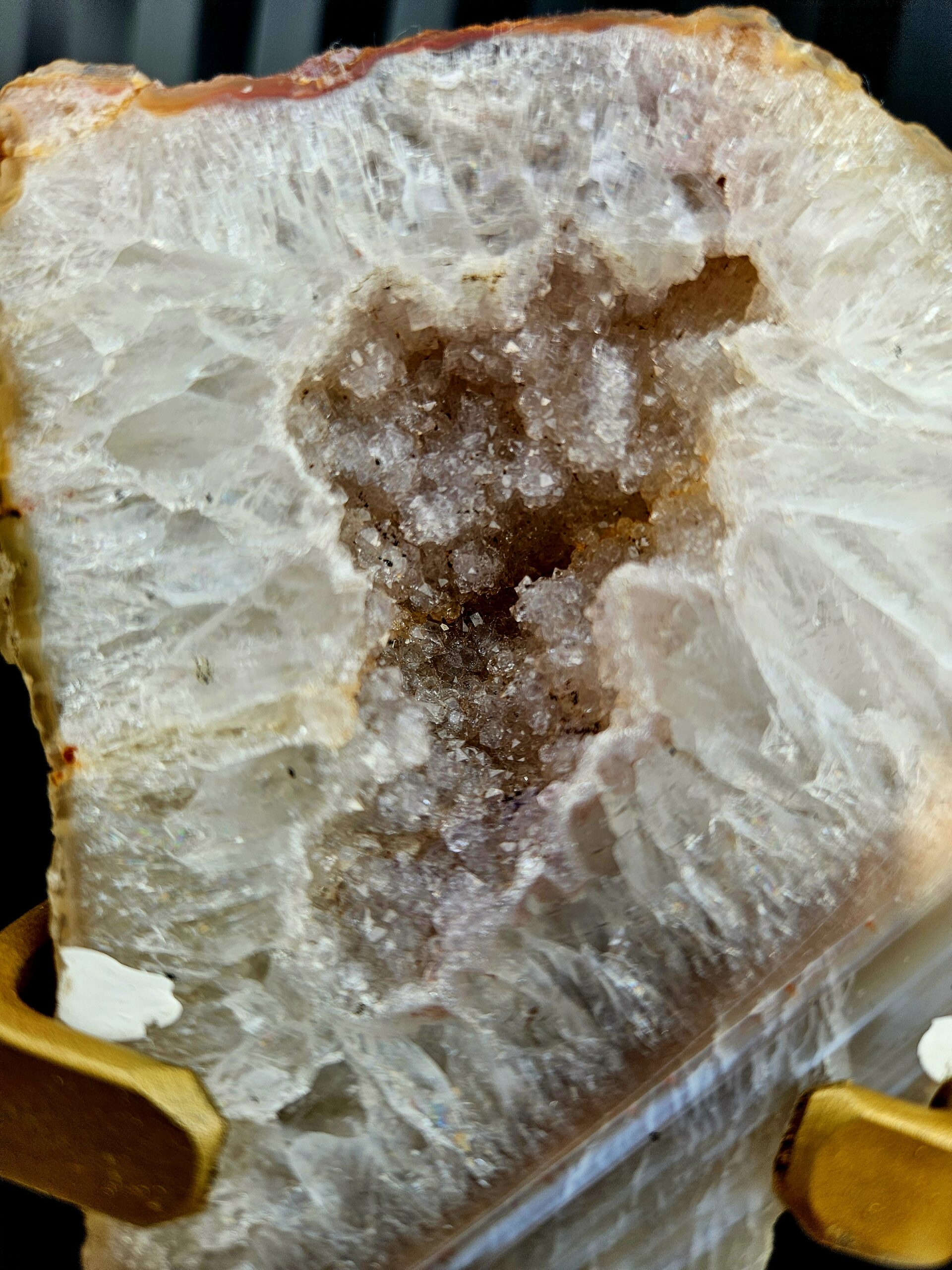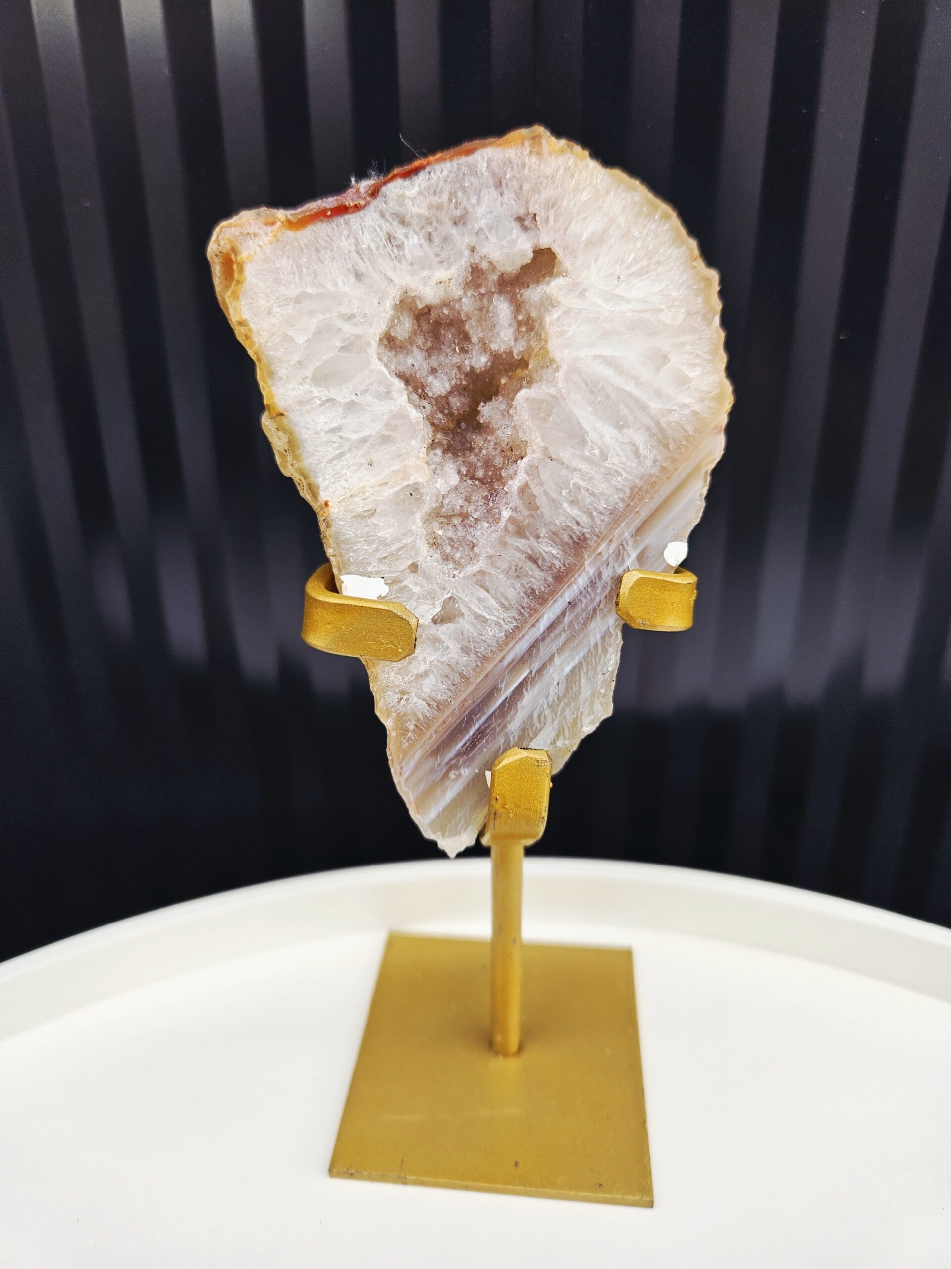 Achátová geóda na zlatom stojane ✨