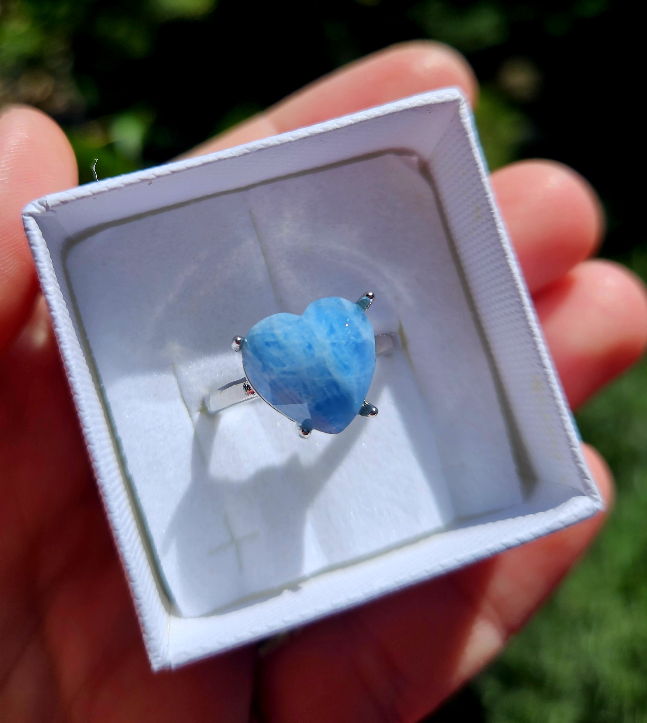 Akvamarín fazetované SRDIEČKO prsteň nastaviteľný č.2
