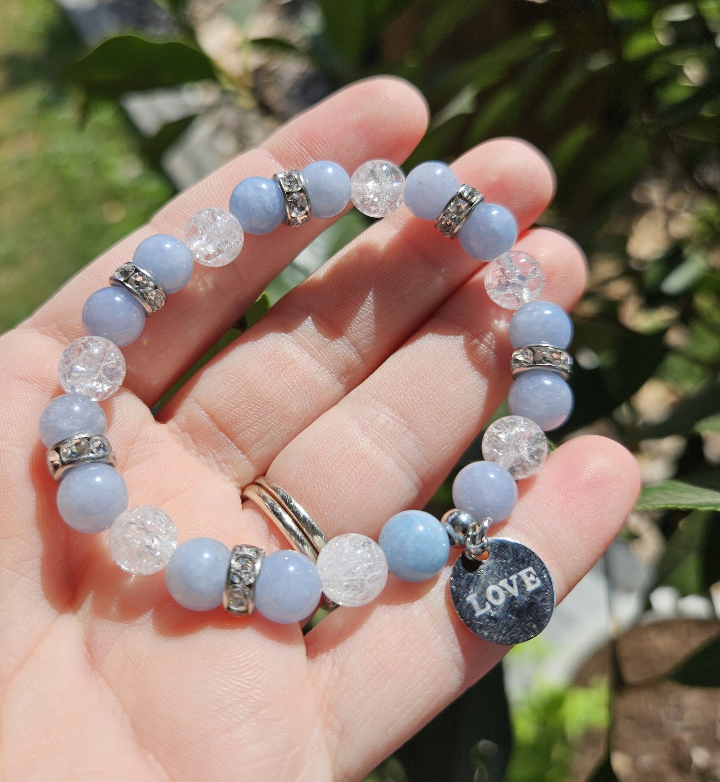 Akvamarín + Krištáľ náramok 8mm love
