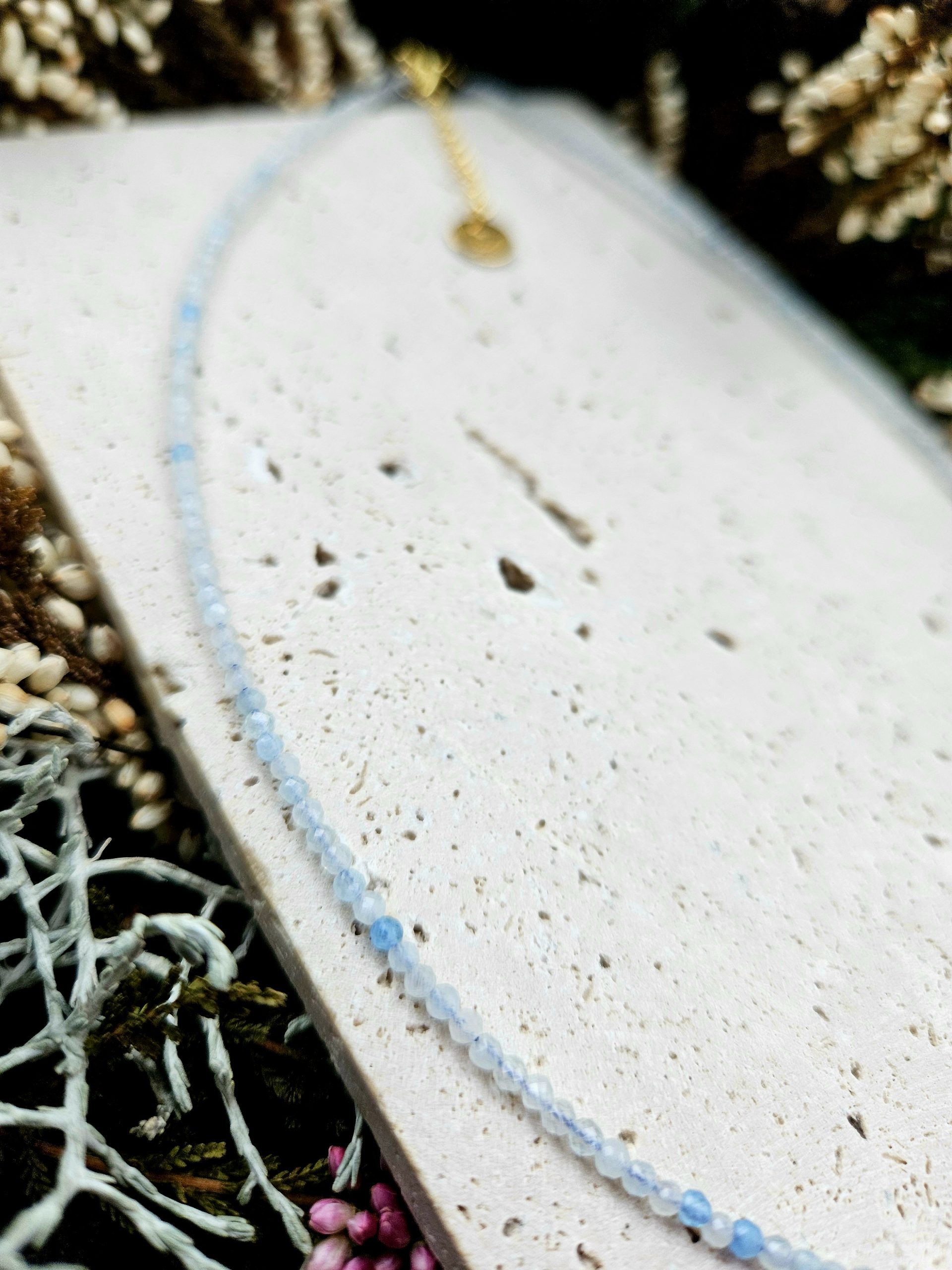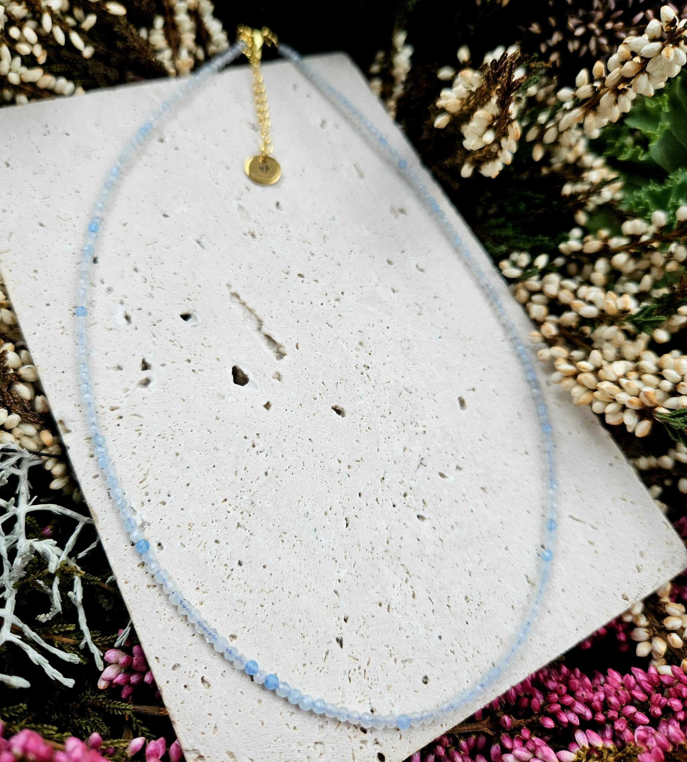 Akvamarín náhrdelník 2mm fazetovaný zlatý