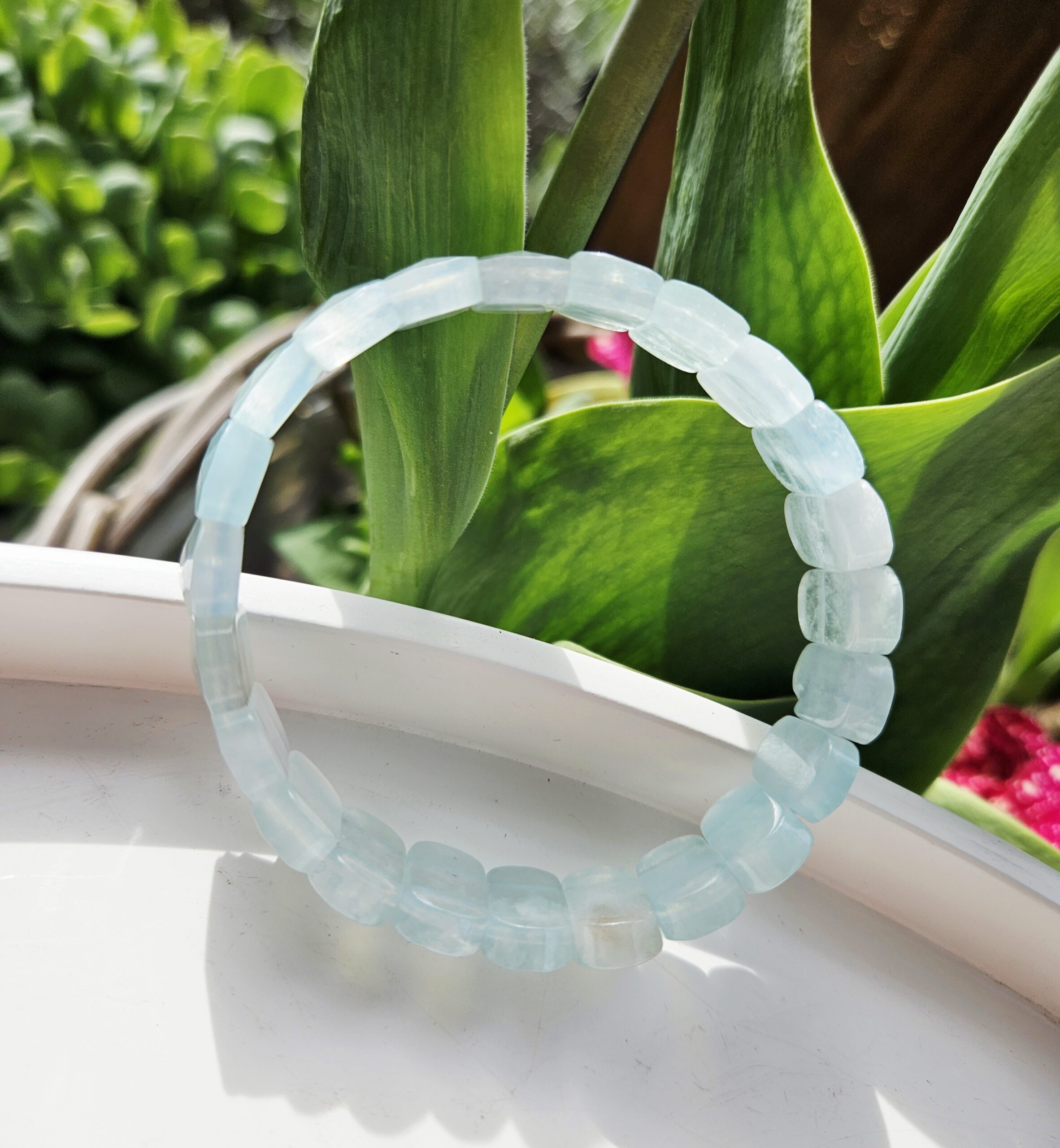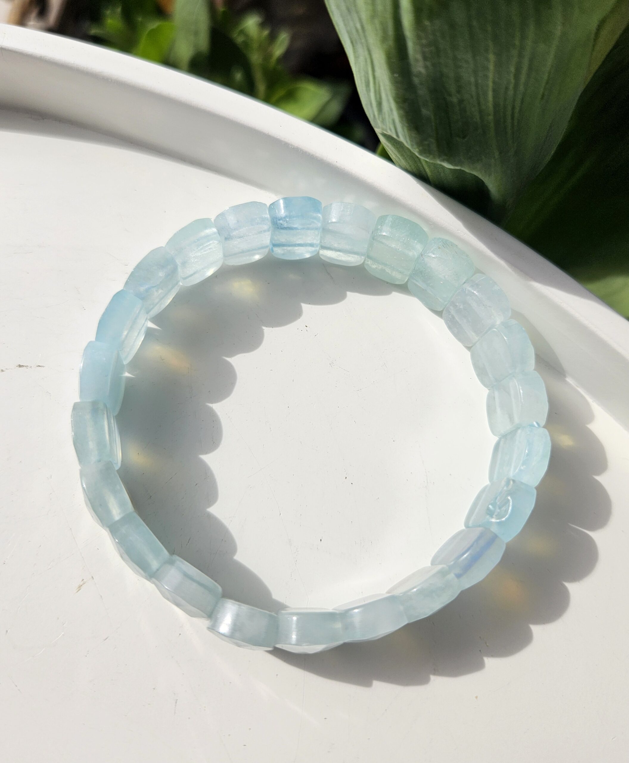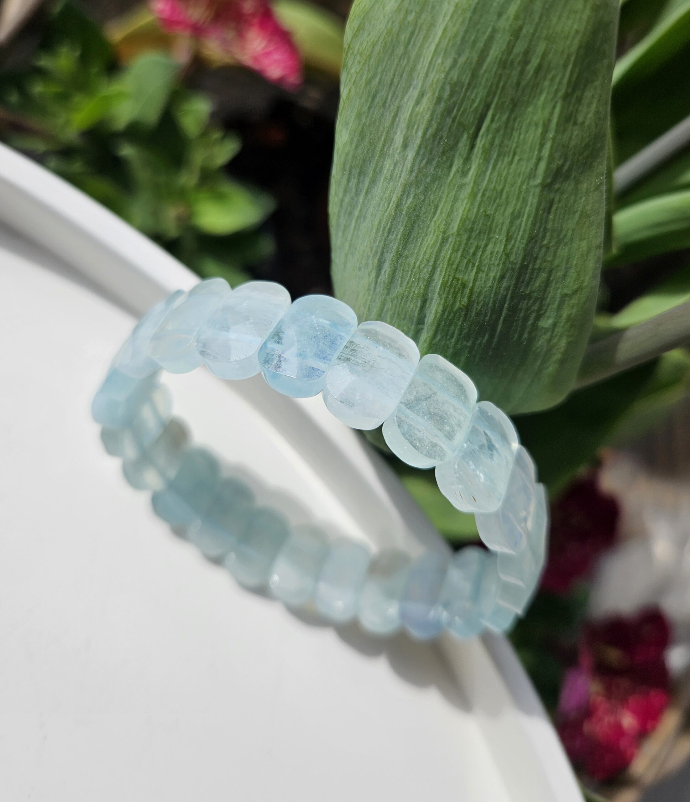 Jemná krása mora ukrytá v každom kamienku… Tento výnimočný náramok z fazetovaného akvamarínu očarí svojím nežným modrým odtieňom a prirodzeným leskom. Platničkové kamene nádherne odrážajú svetlo a vytvárajú elegantný, luxusný efekt na zápästí.