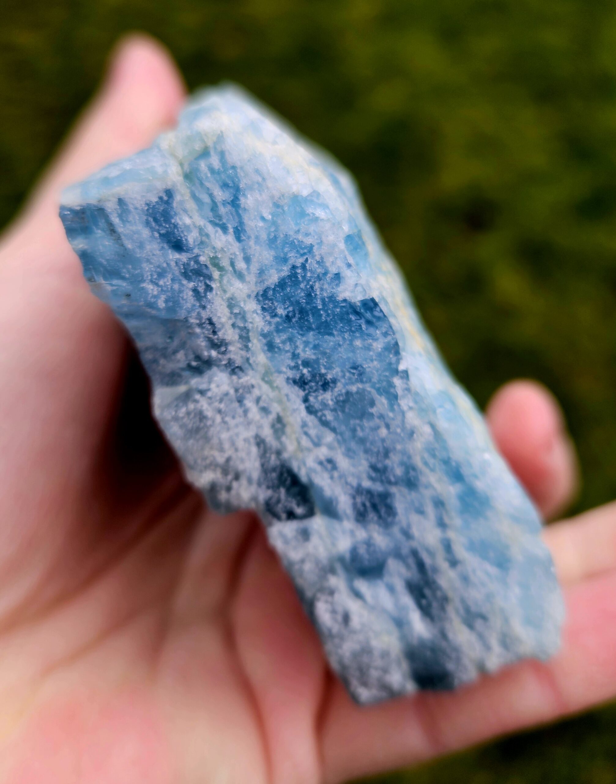 Výrazný prírodný akvamarín v surovej forme očarí jemnými modrými odtieňmi pripomínajúcimi pokojné morské hlbiny. Tento masívny a autentický kus je ideálny pre náročných zberateľov aj milovníkov výnimočných minerálov.