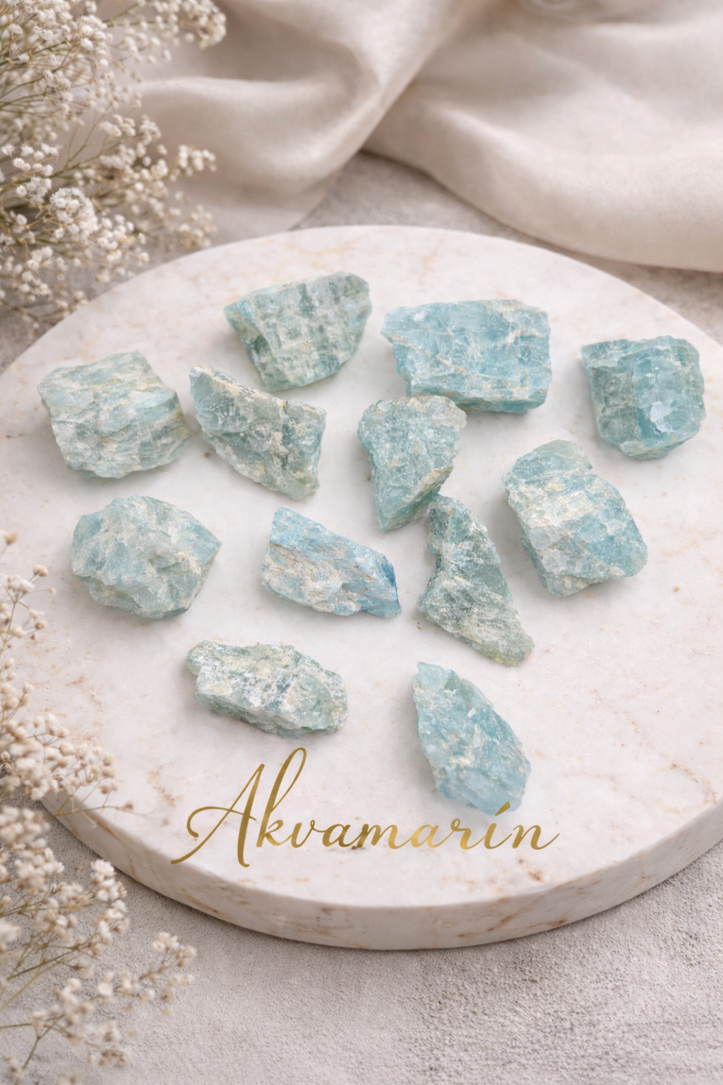 Surový akvamarín v prírodnej podobe očarí svojou jemnou modrozelenou farbou, ktorá evokuje čistotu mora, pokoj a ľahkosť bytia. Každý kúsok je originál, tvarovaný samotnou prírodou, s jedinečnou štruktúrou a prirodzenými inklúziami.