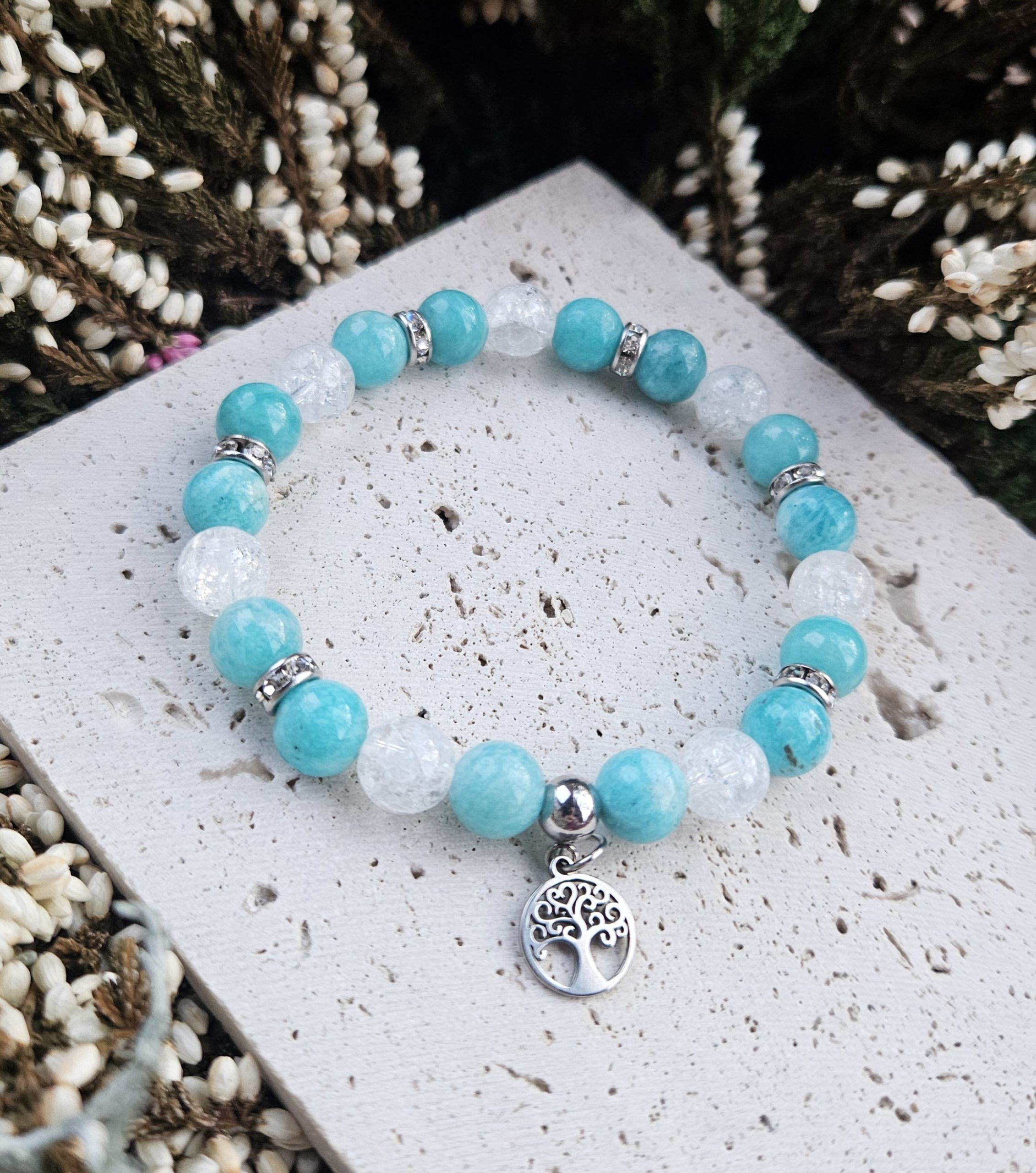 Amazonit AA + Krištáľ náramok 8mm STROM ŽIVOTA
