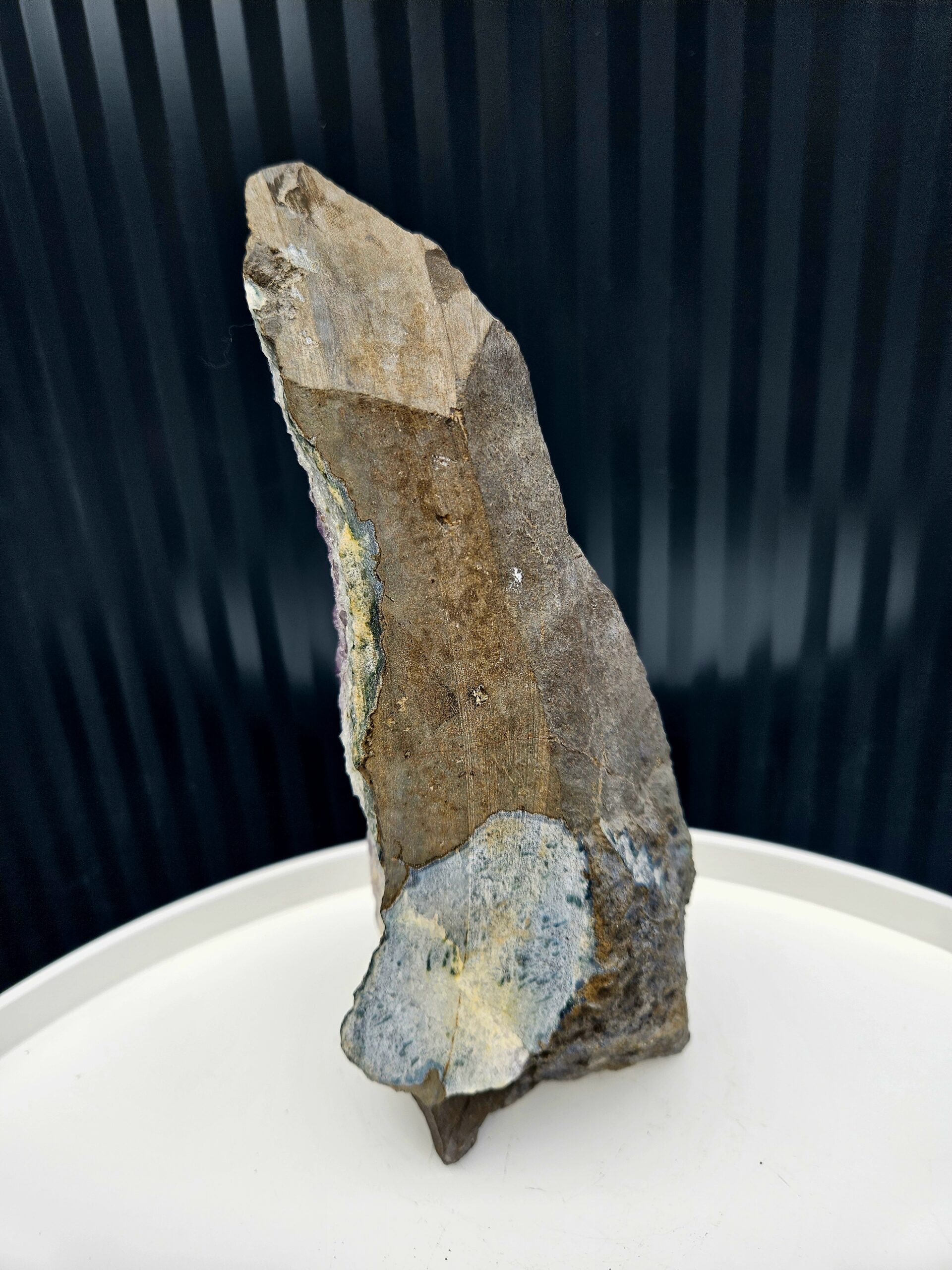Kalcit v kameni prináša svetlejšie tóny a zaujímavý kontrast, zároveň je známy svojou energiou očisty a posilnenia. Spolu s ametystom vytvára silnú harmonizačnú dvojicu – podporuje pokoj, rovnováhu a pozitívnu energiu v priestore.