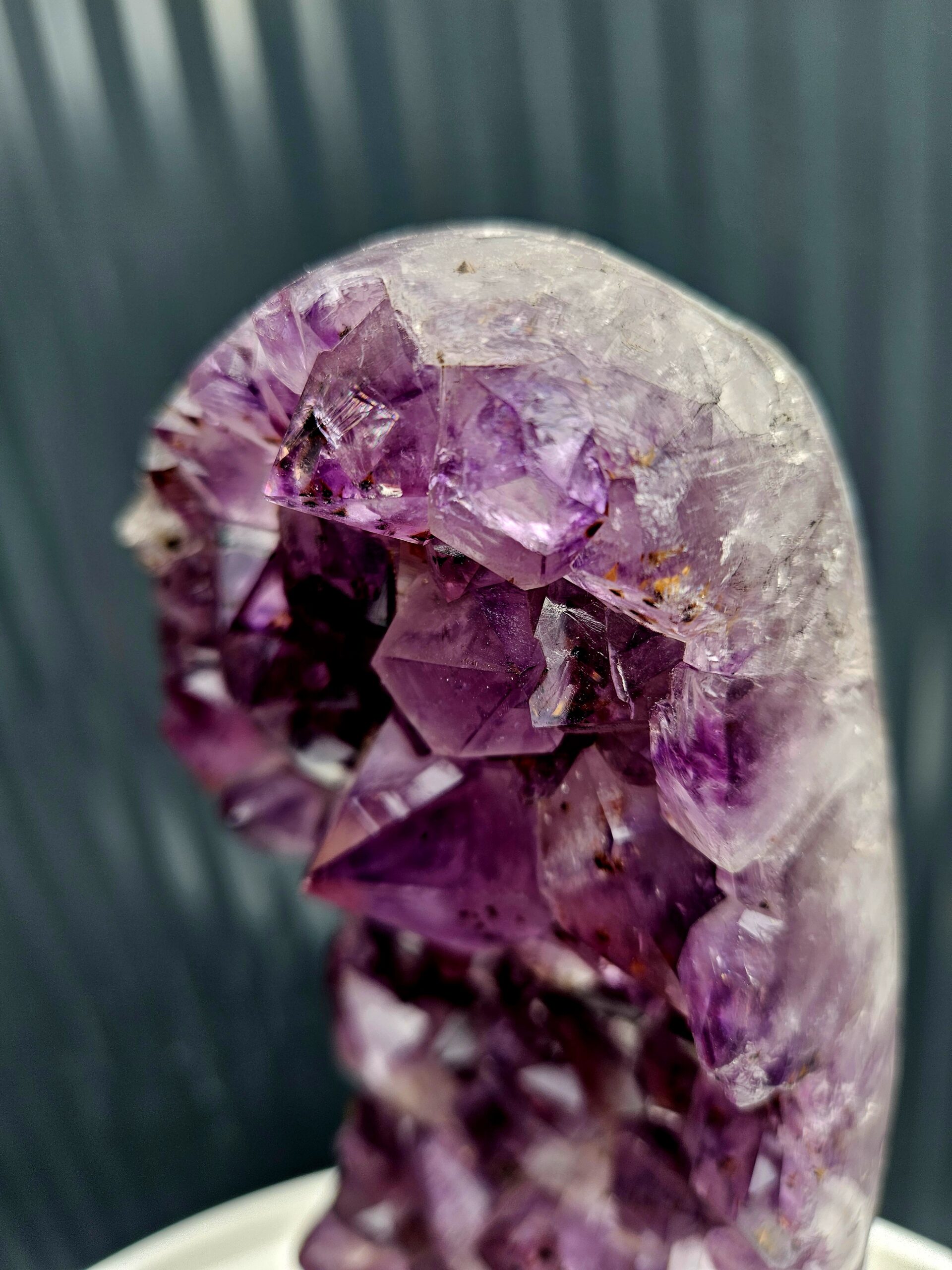 Nádherný ametyst AAA kvality s bohatou kresbou a výraznými kryštálmi, ktorý zaujme nielen farbou, ale aj unikátnymi prírodnými detailmi.