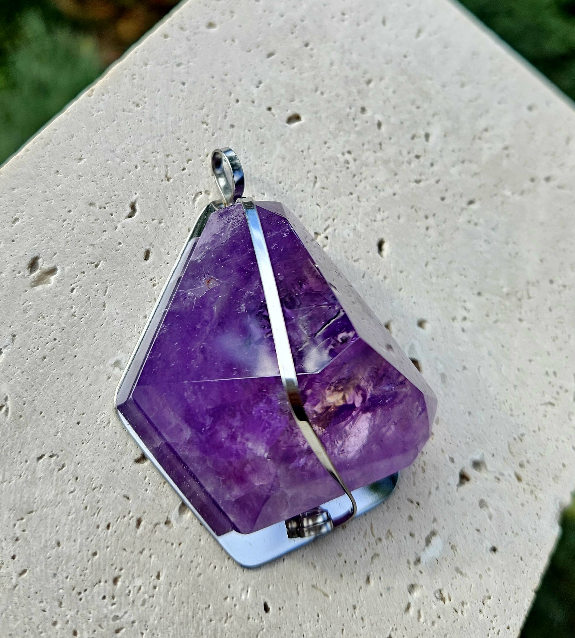 Ametyst EXTRA prívesok na platničke z chir.ocele