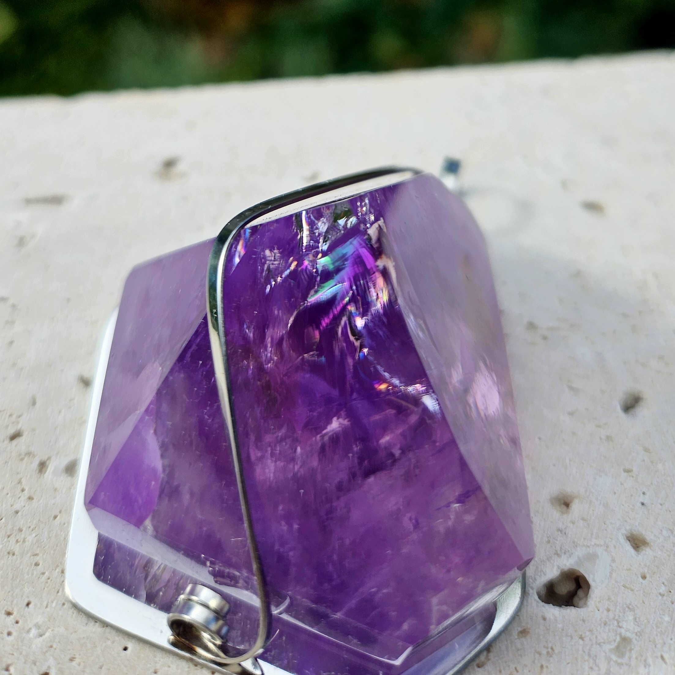 Ametyst EXTRA s aurickými odleskami prívesok na platničke z chirurgickej ocele