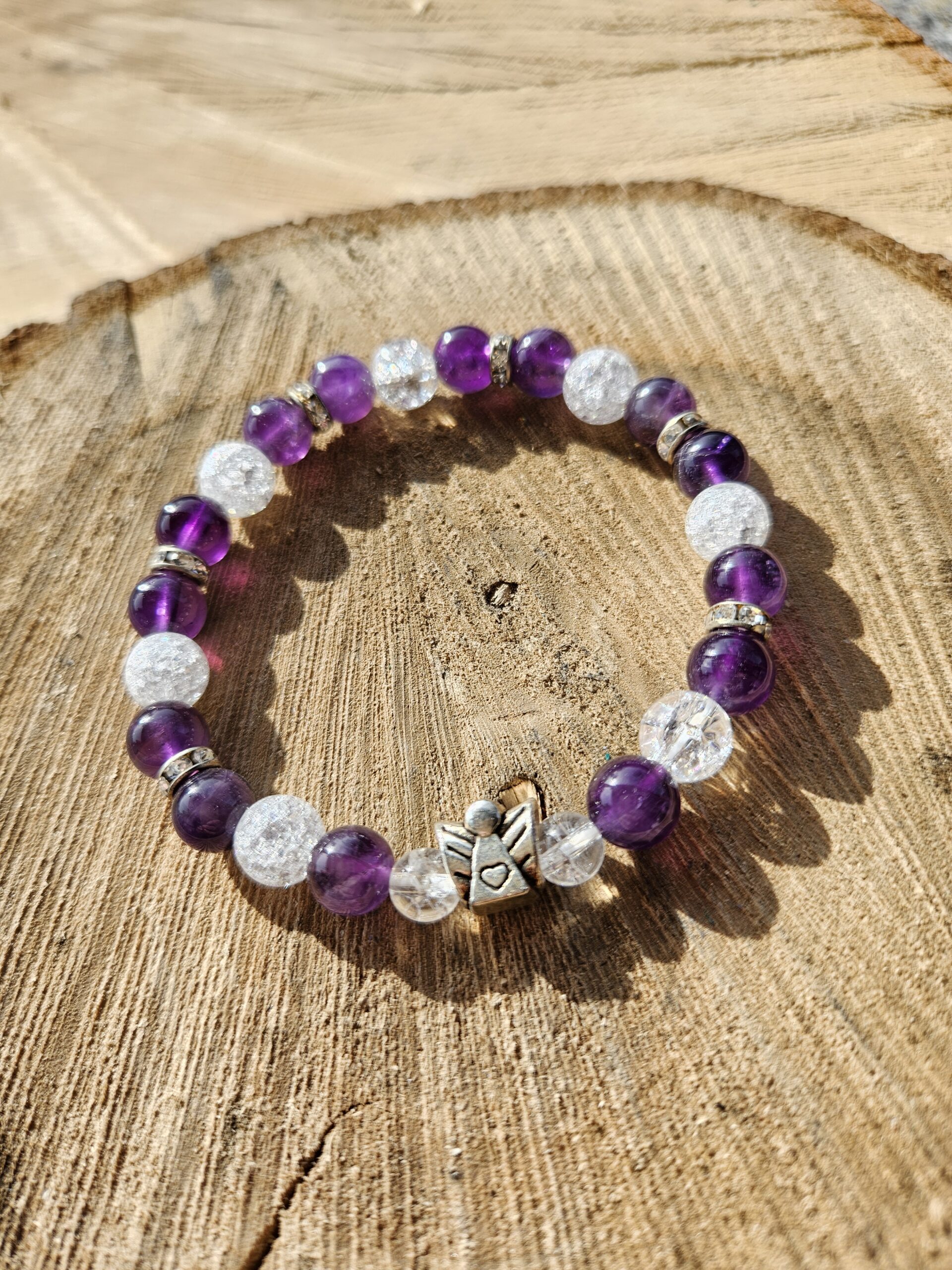 Ametyst + Krištáľ náramok 8mm Anjelik