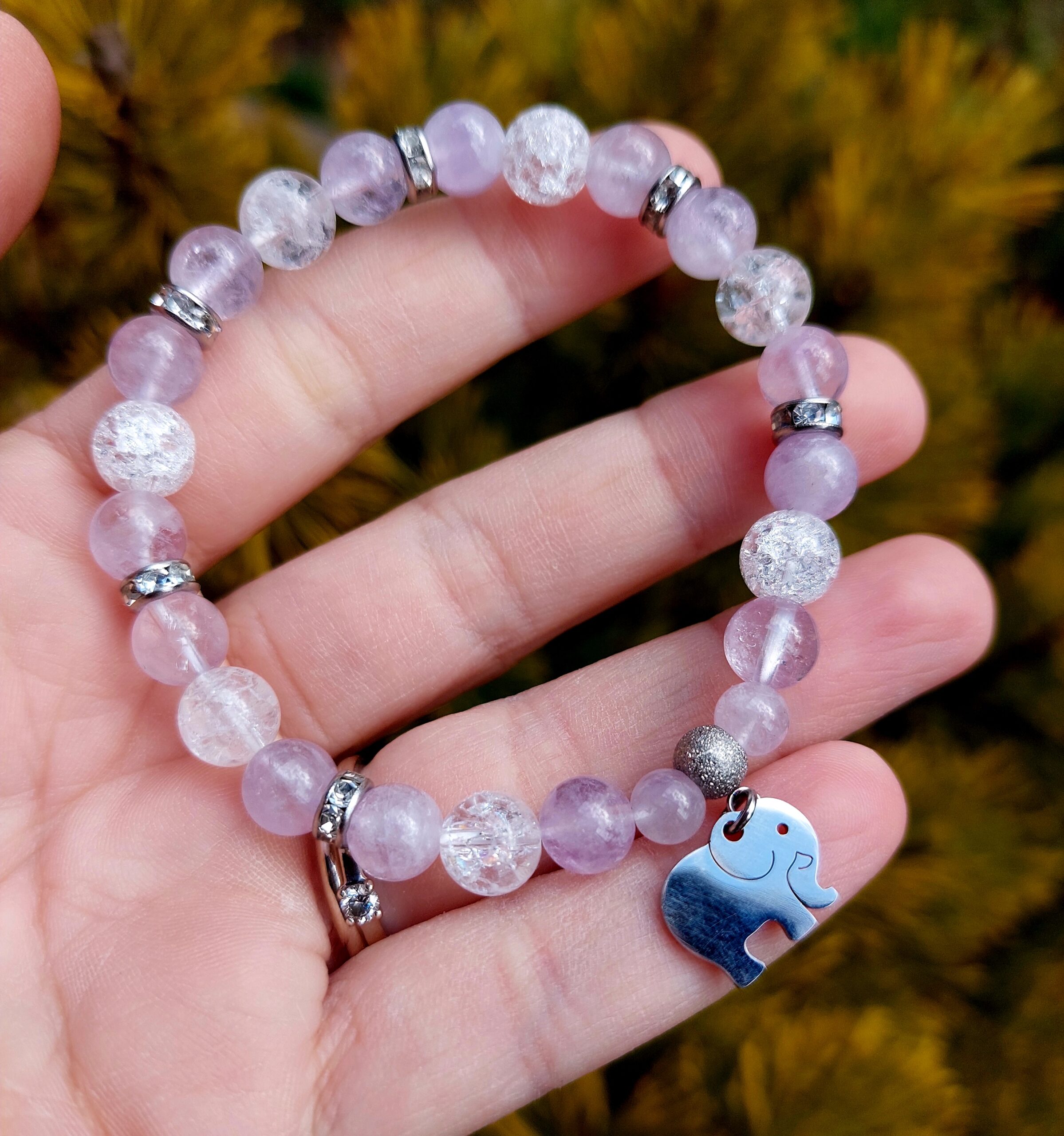 Ametyst levanduľový + Krištáľ náramok 8mm Sloník