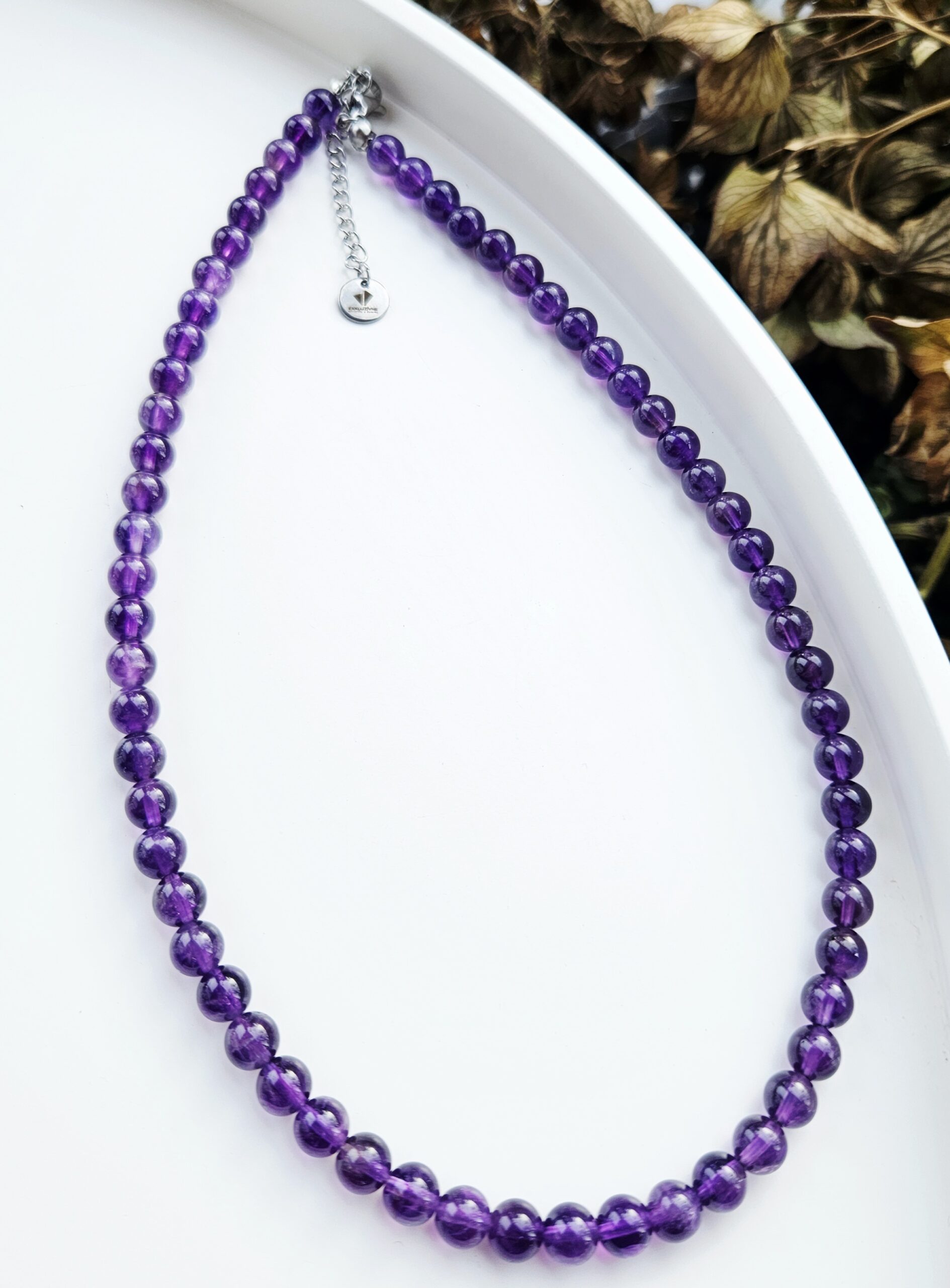 Elegantný ametystový náhrdelník vytvorený z hladkých guľôčok vo veľkosti 6 mm.