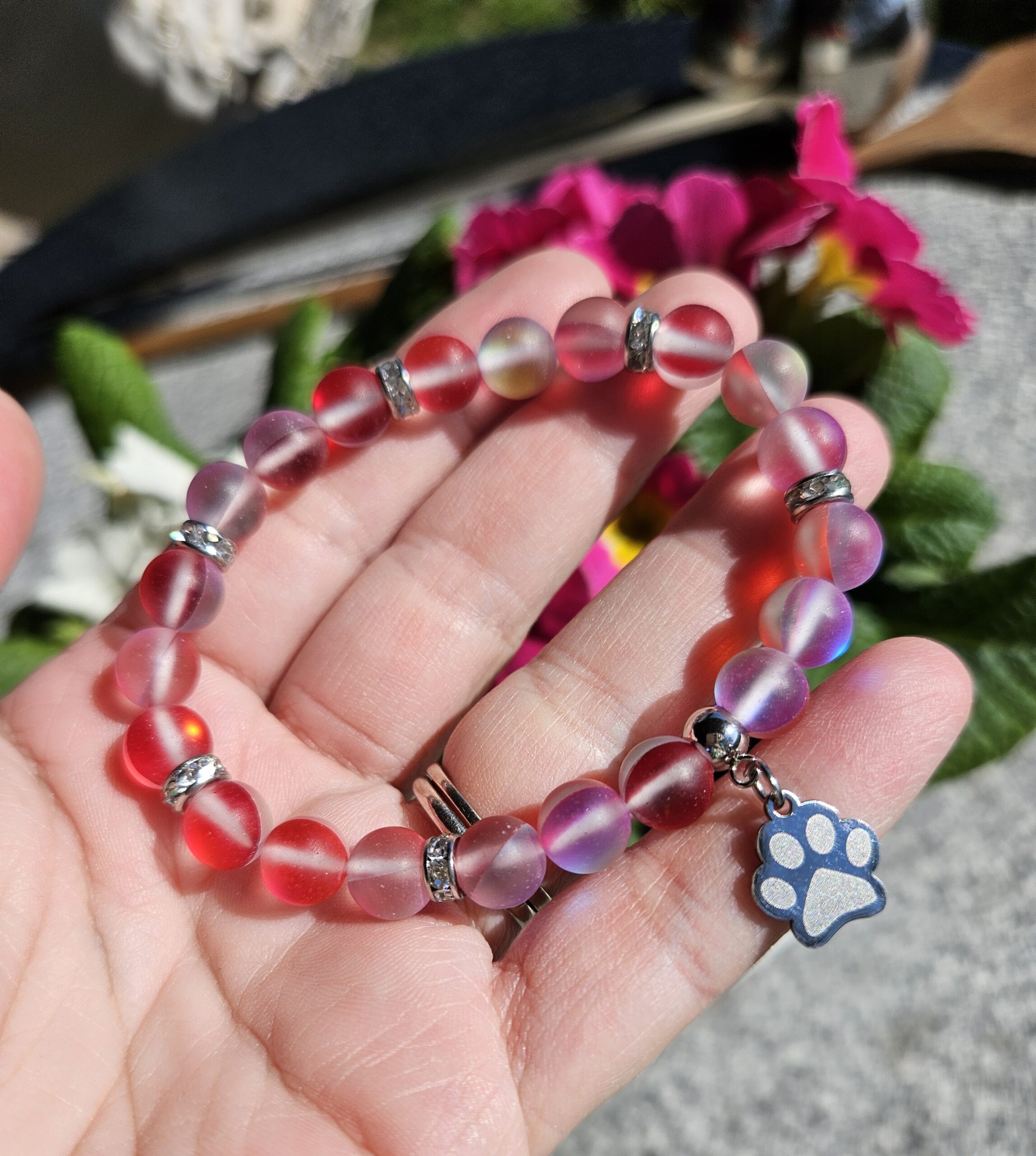Aqua Aura červená náramok 8mm Labka
