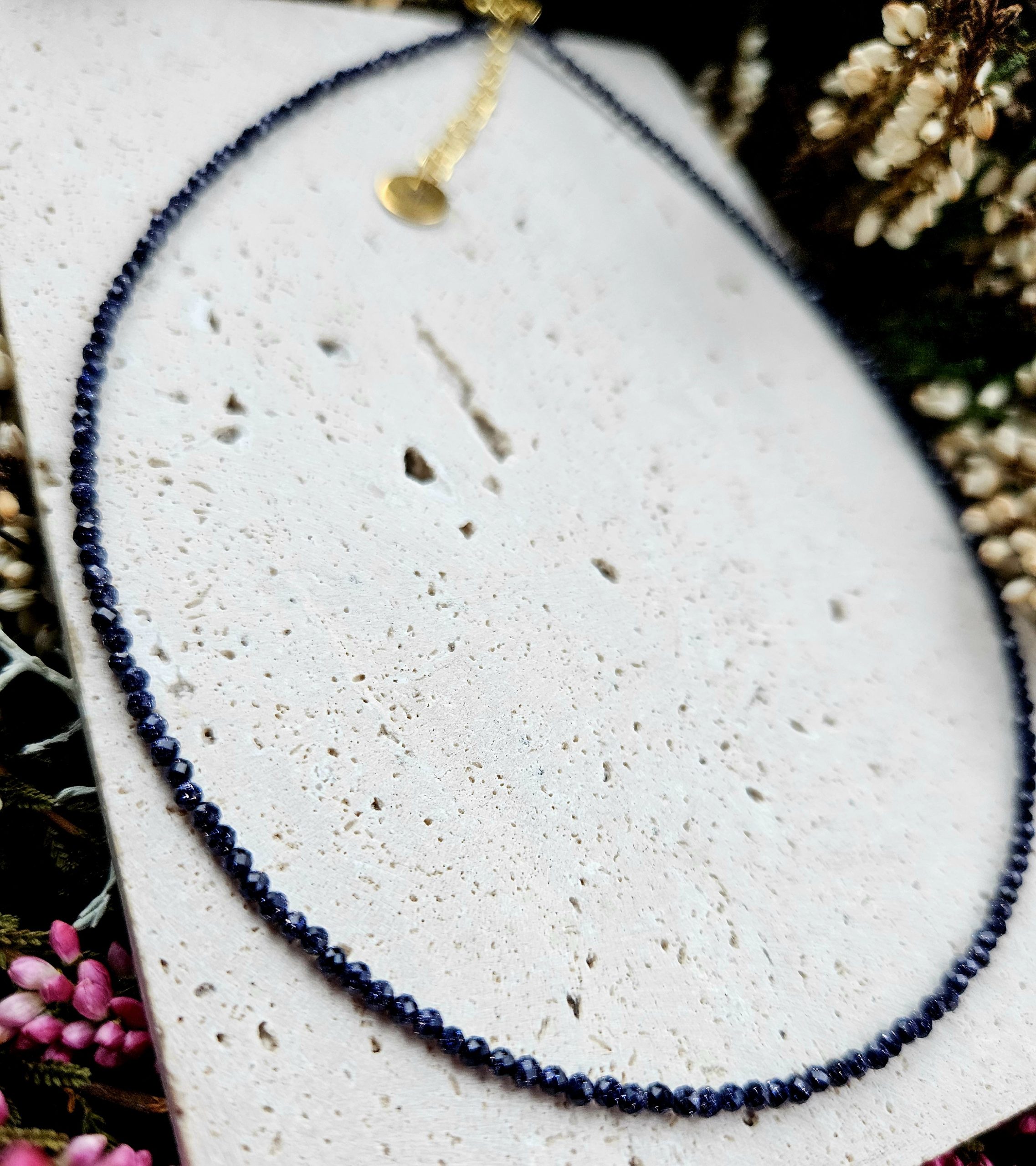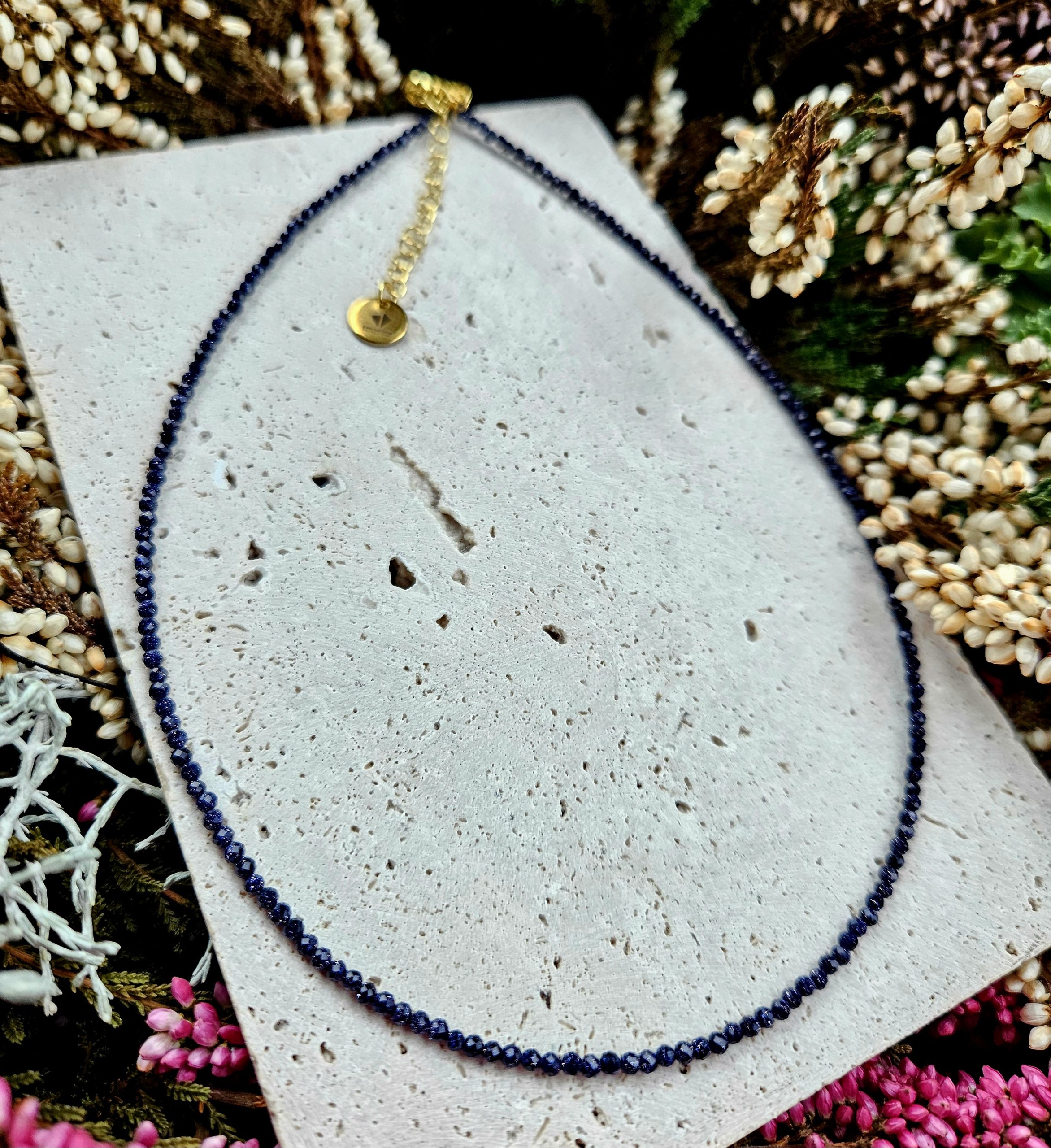 Avanturín modrý náhrdelník 2mm fazetovaný zlatý