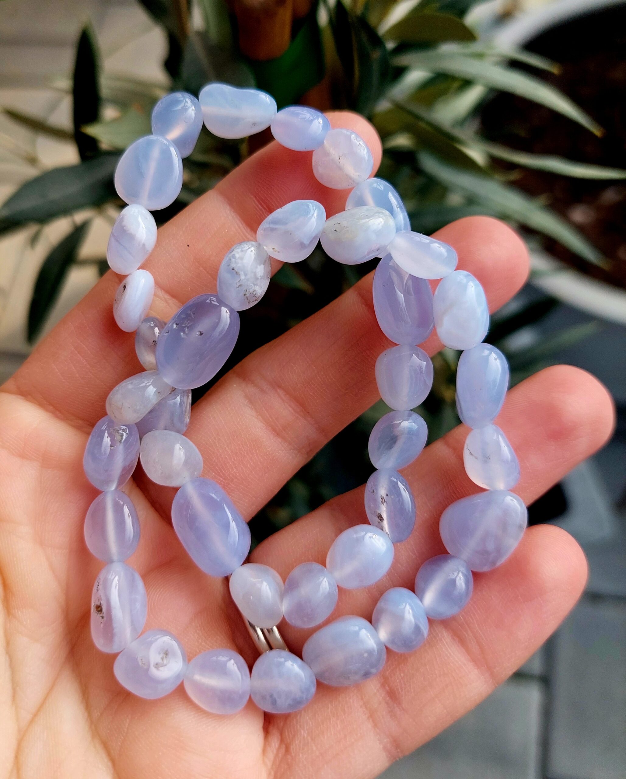 Chalcedón modrý náramok fazuľkový