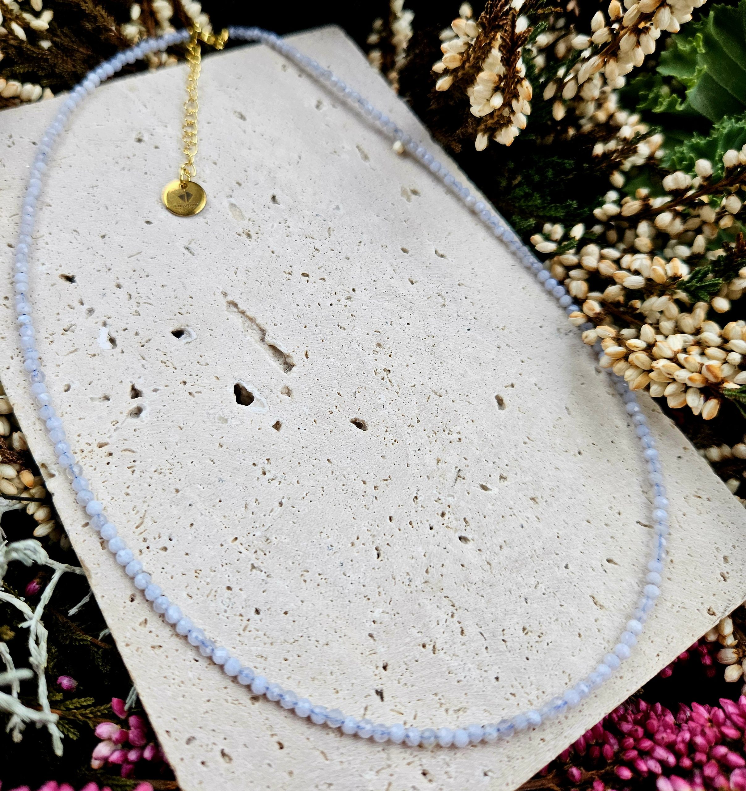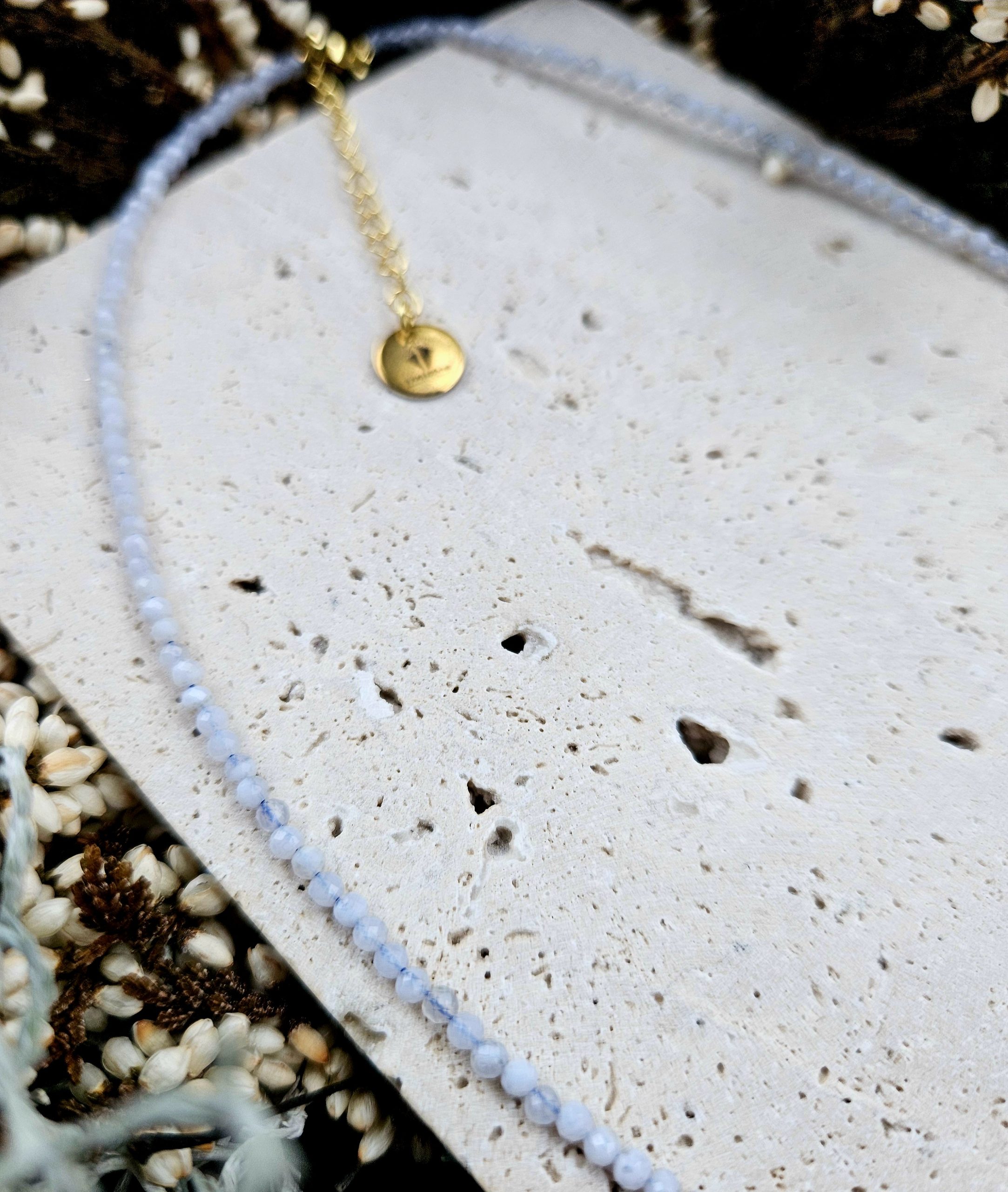 Chalcedón modrý náhrdelník 2mm fazetovaný zlatý