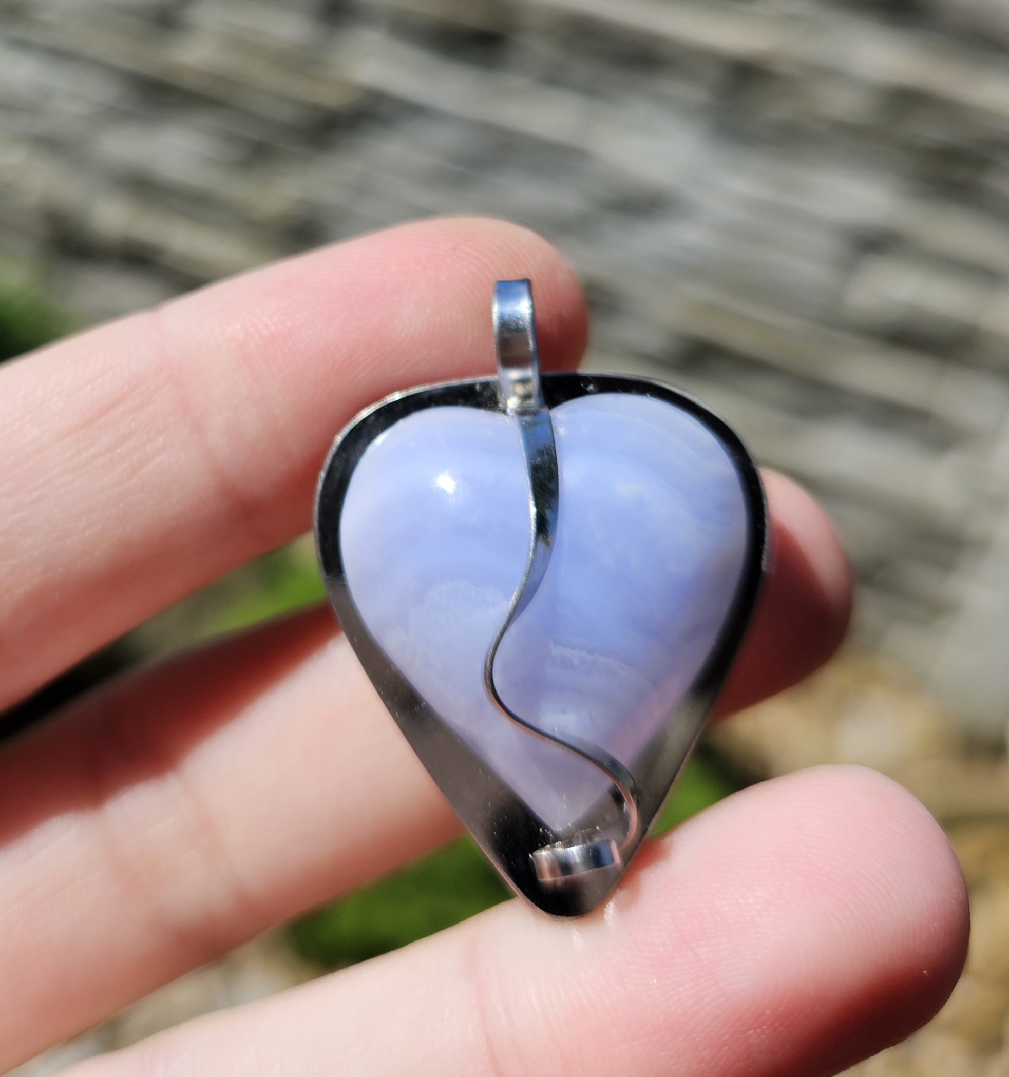 Chalcedón modrý prívesok na platničke z chir.ocele č.2