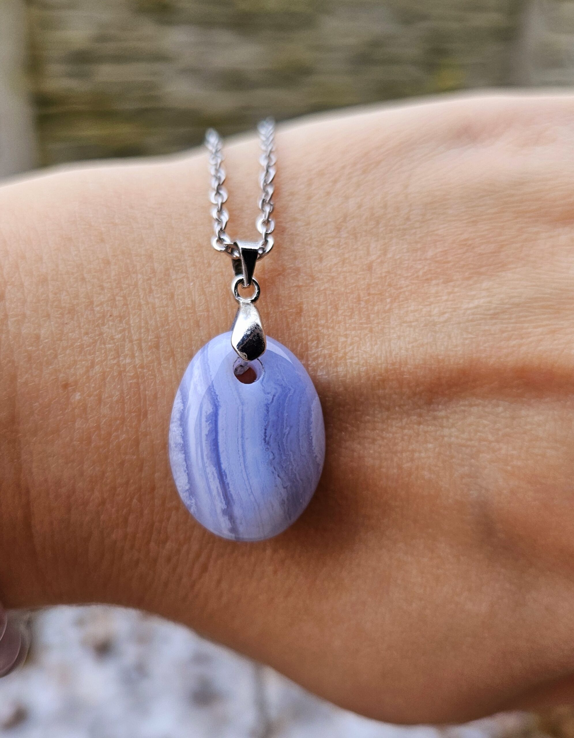 Prívesok Chalcedón modrý na retiazke z chirurgickej ocele
