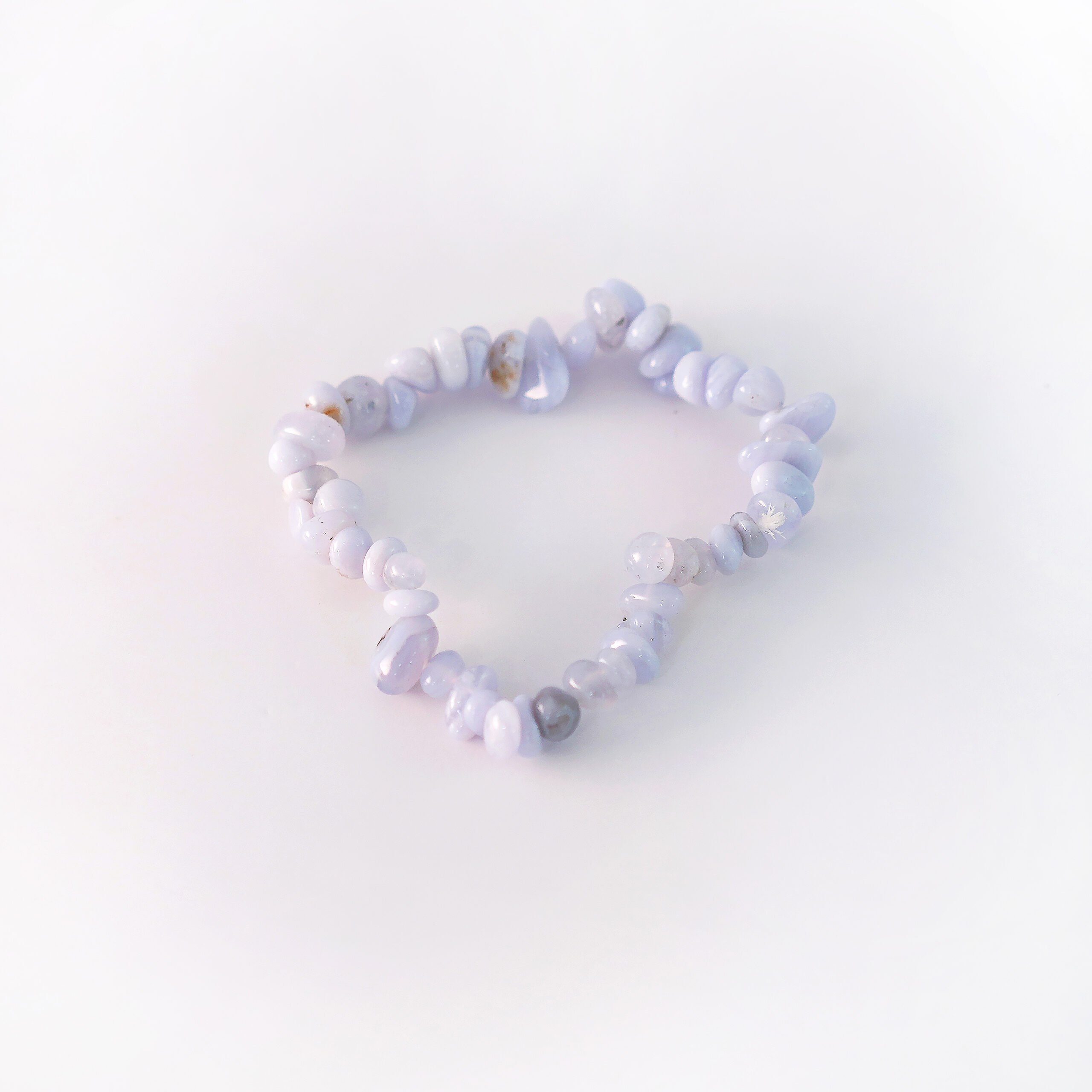 Lámaný náramok na gumičke minerálu CHALCEDÓN MODRÝ Veľkosť kamienkov cca 6-8mm.