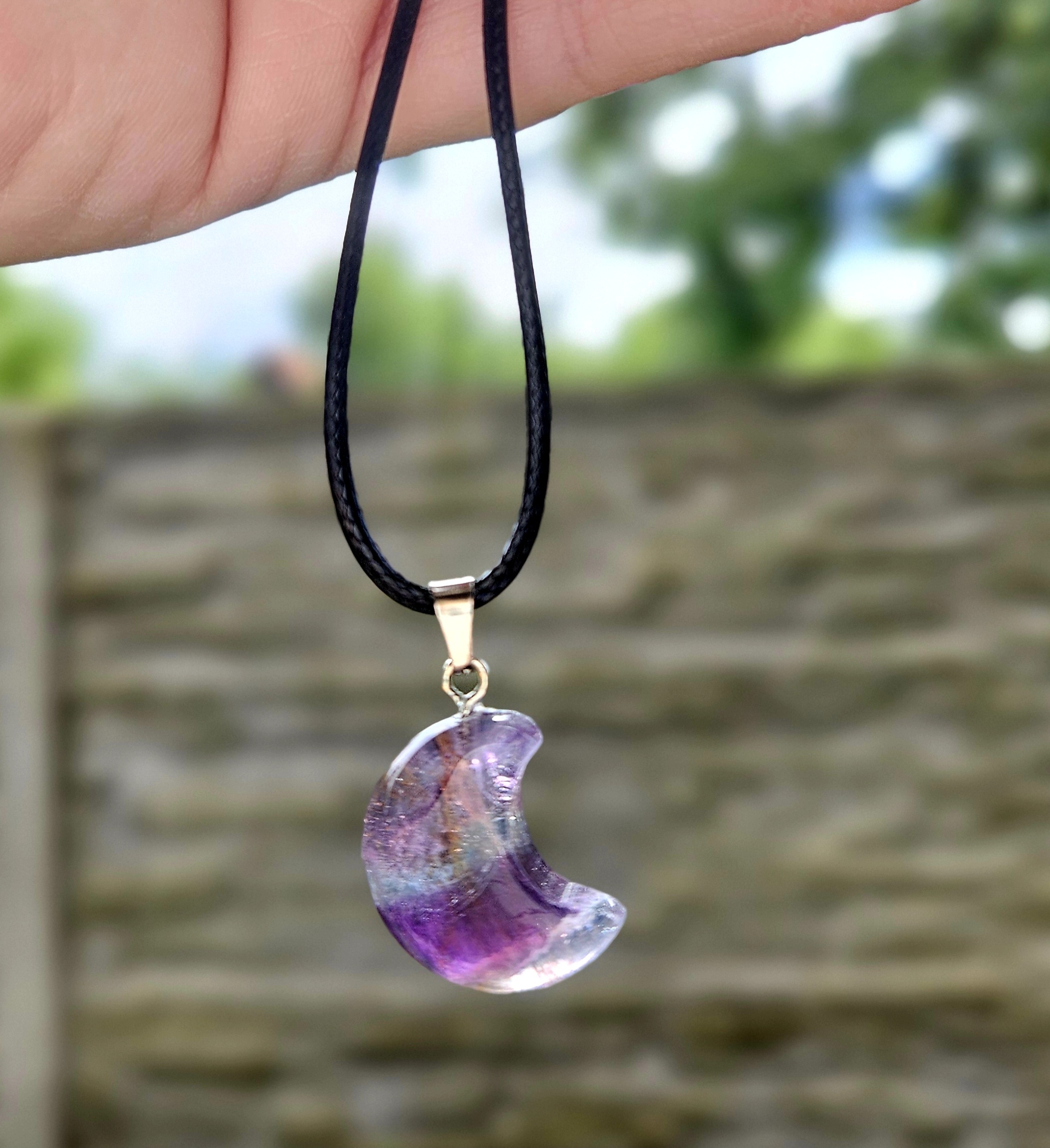 Fluorit dúhový prívesok MESIAC na koženke č.3