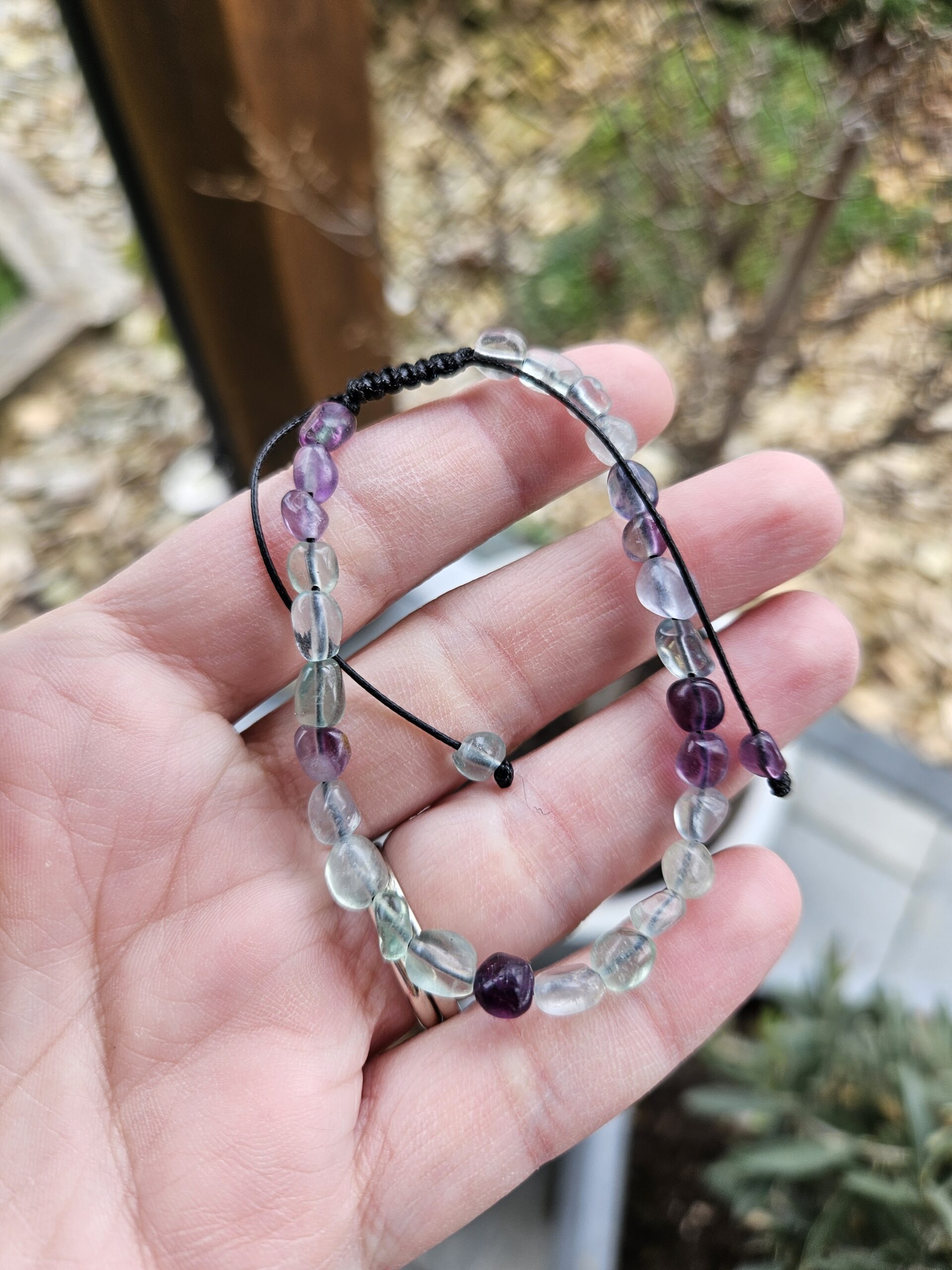 Náramok je navlečený na šnúrke ktorú si roztiahnete a zatiahnete na potrebnú veľkosť.