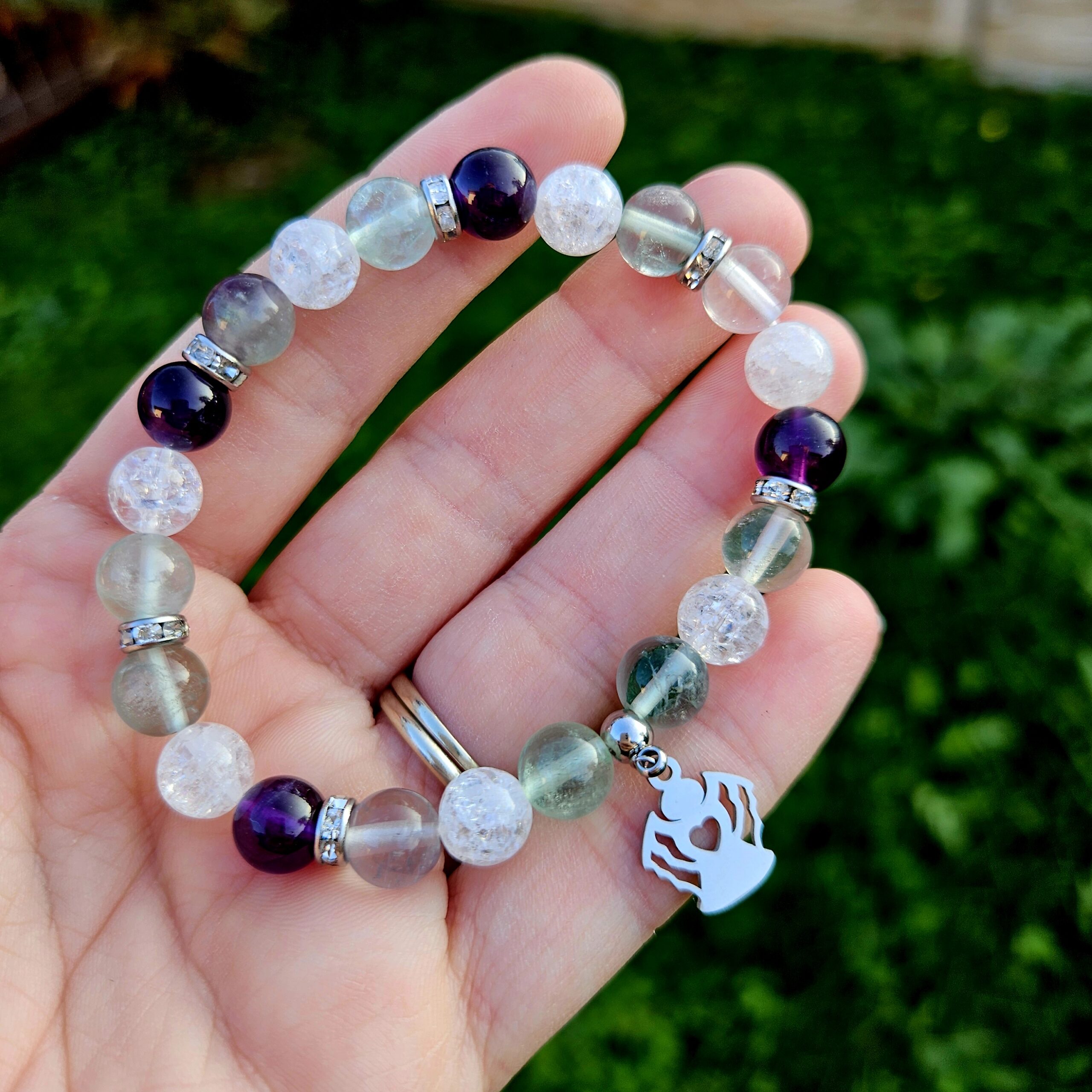 Fluorit + Krištáľ náramok 8mm Anjelik