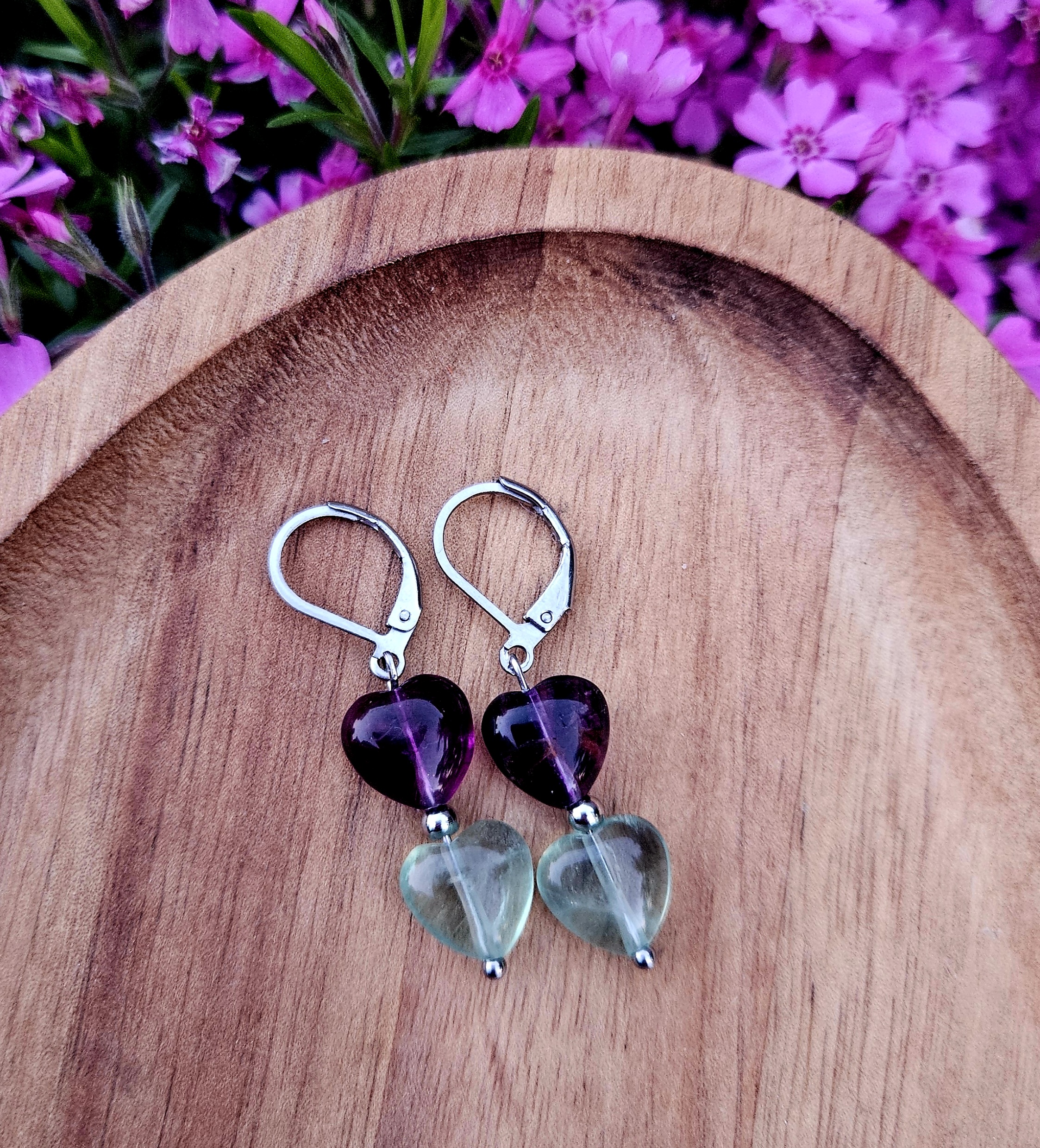 Fluorit náušnice SRDIEČKA č.1