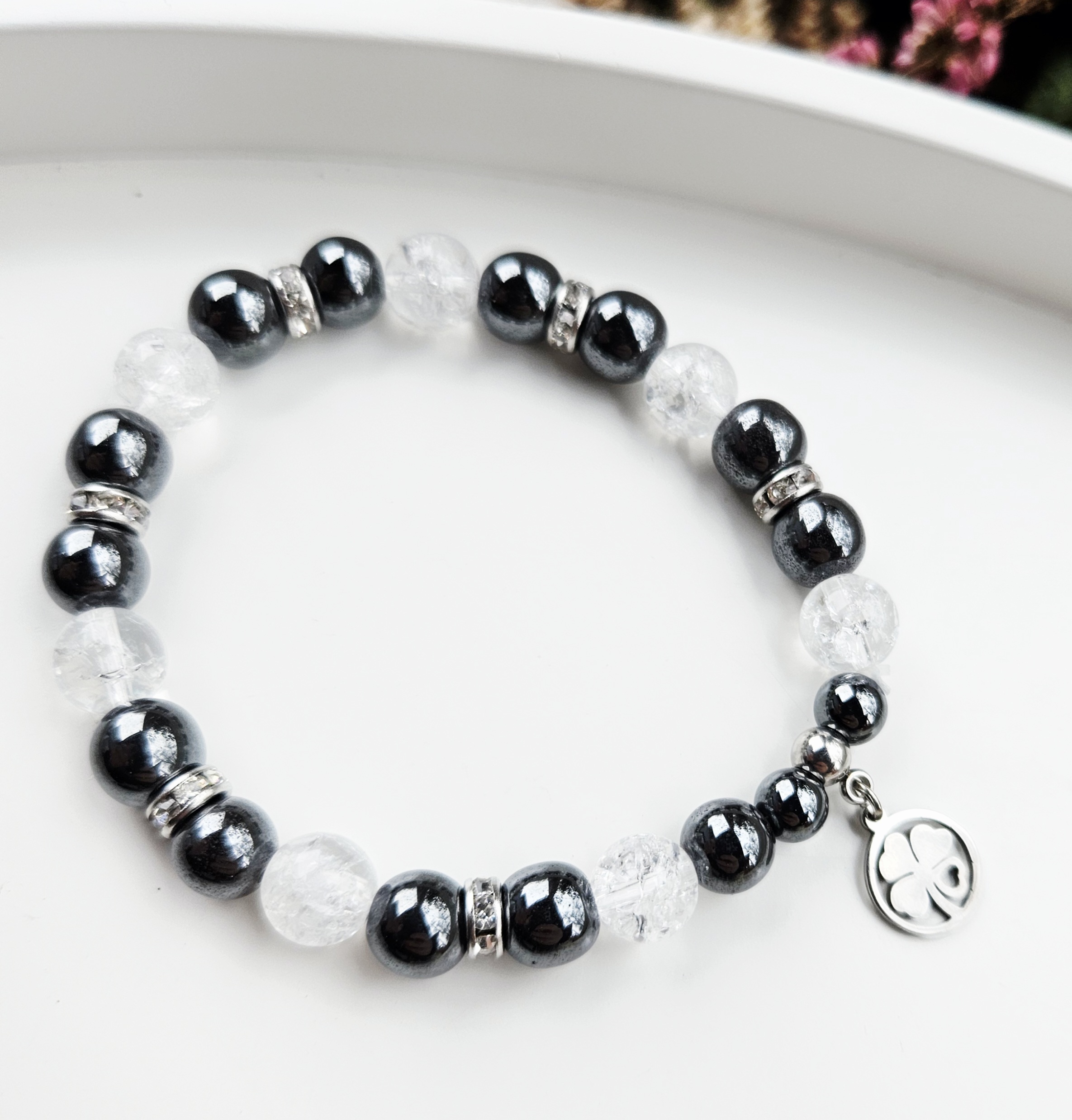 Náramok Hematit & praskaný krištáľ – 8 mm
