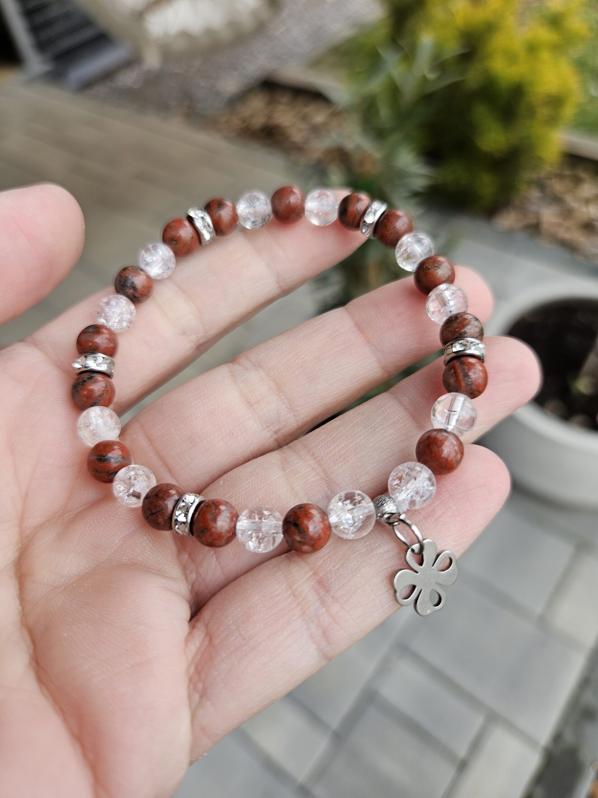 Jaspis červený + Krištáľ náramok 6mm ŠTVORLÍSTOK