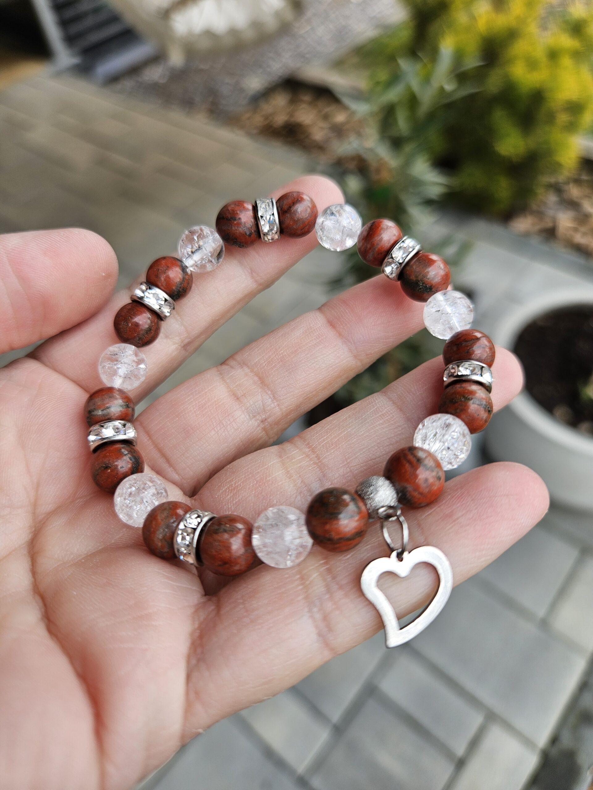 Jaspis červený + Krištáľ náramok 8mm SRDIEČKO