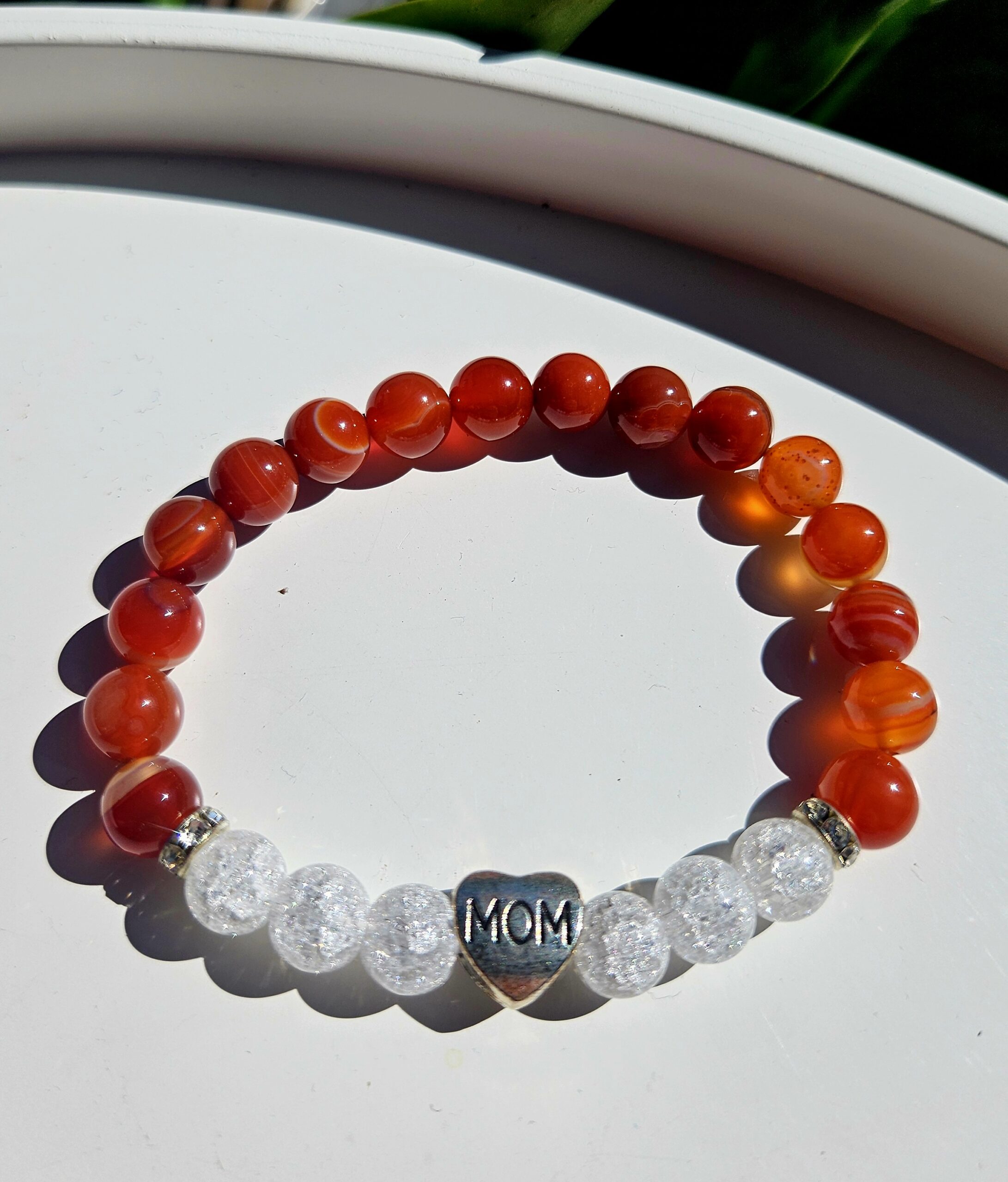 Karneol + Krištáľ náramok 8mm MOM