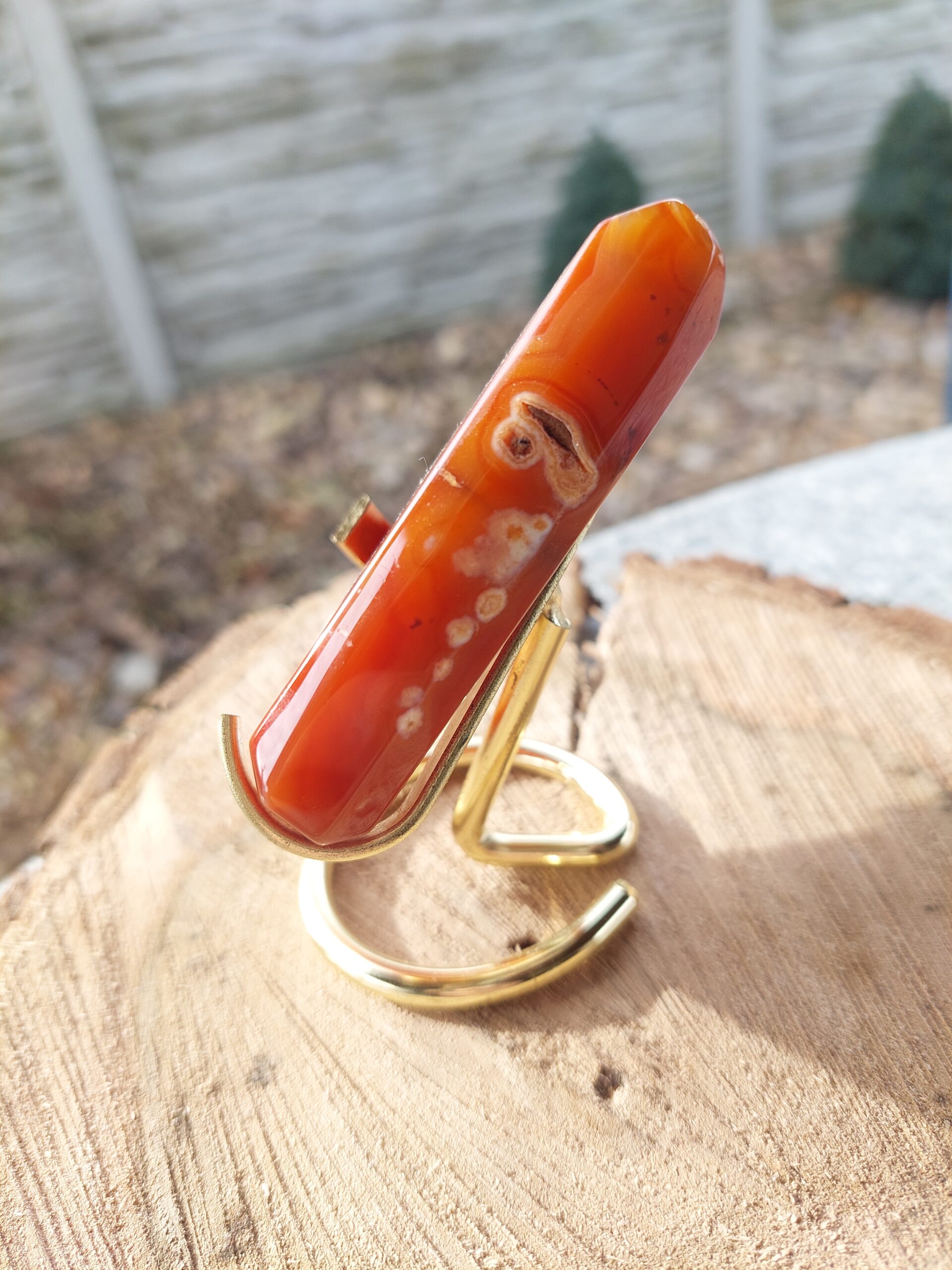 Karneol na zlatom stojane