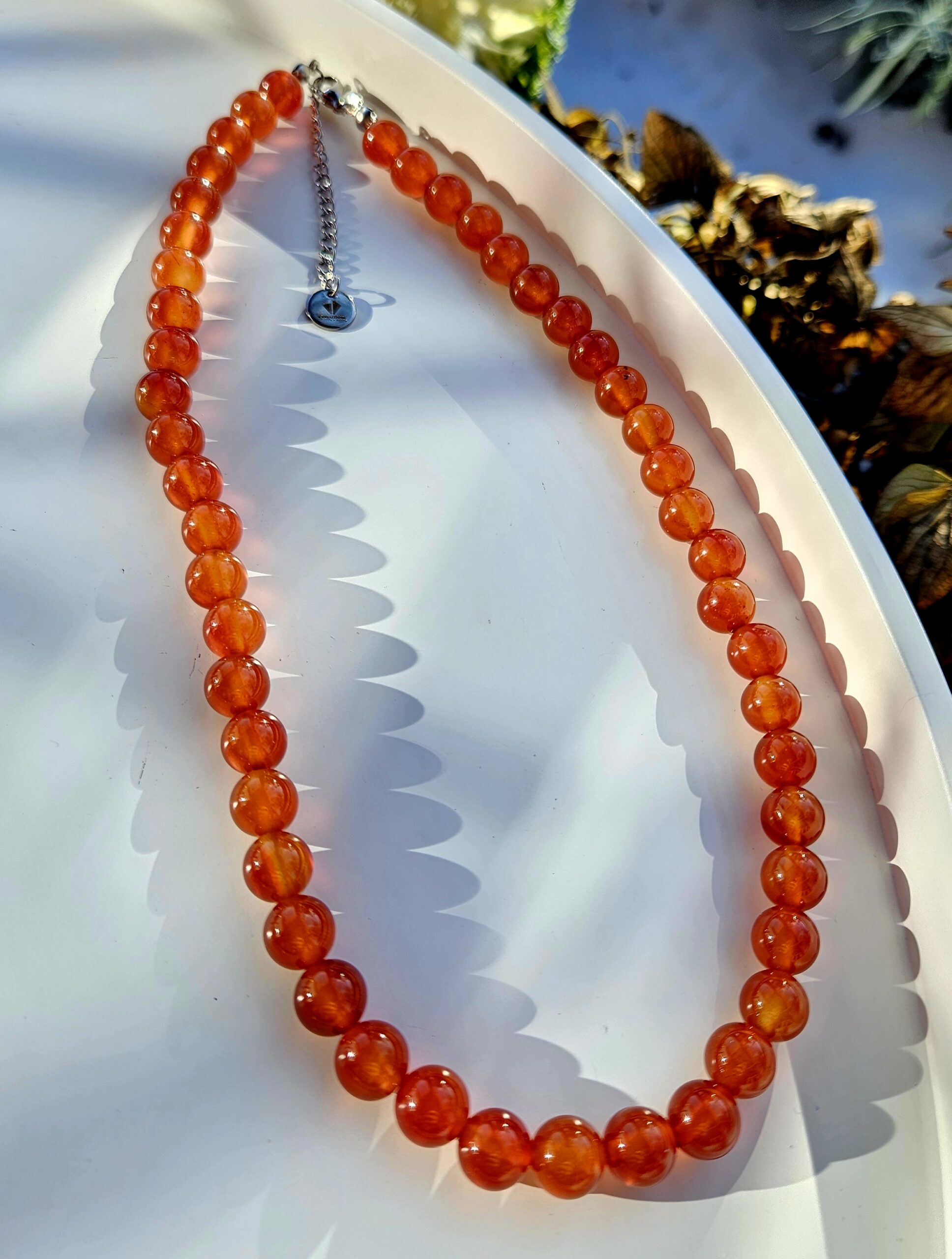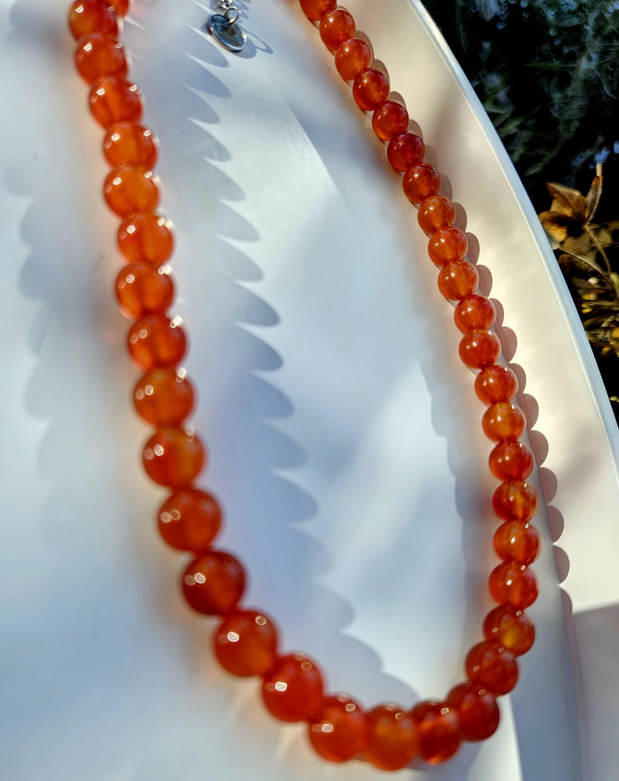 Elegantný náhrdelník z prírodného karneolu s guľôčkami o veľkosti 8 mm je silným talizmanom vitality, odvahy a životnej energie. Teplé ohnivé odtiene karneolu symbolizujú vnútornú silu, vášeň a radosť zo života.