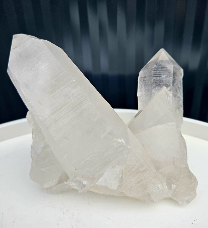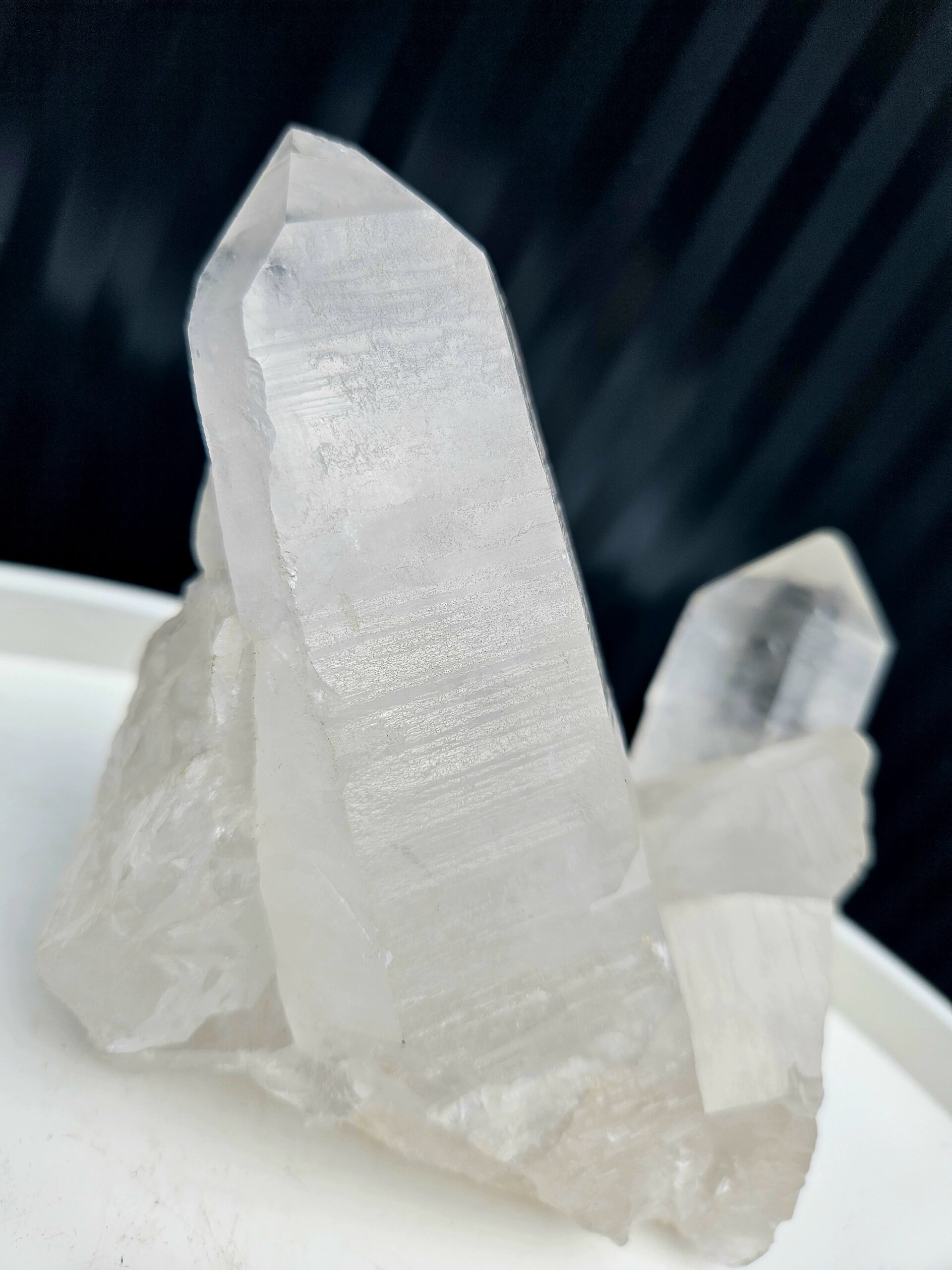 Tento jedinečný lemuriánsky krištáľový klaster zaujme na prvý pohľad svojou silou aj charakterom. Výrazné horizontálne línie – lemuriánske kódy sú krásne čitateľné a dodávajú mu autentickosť aj mystickú hĺbku.