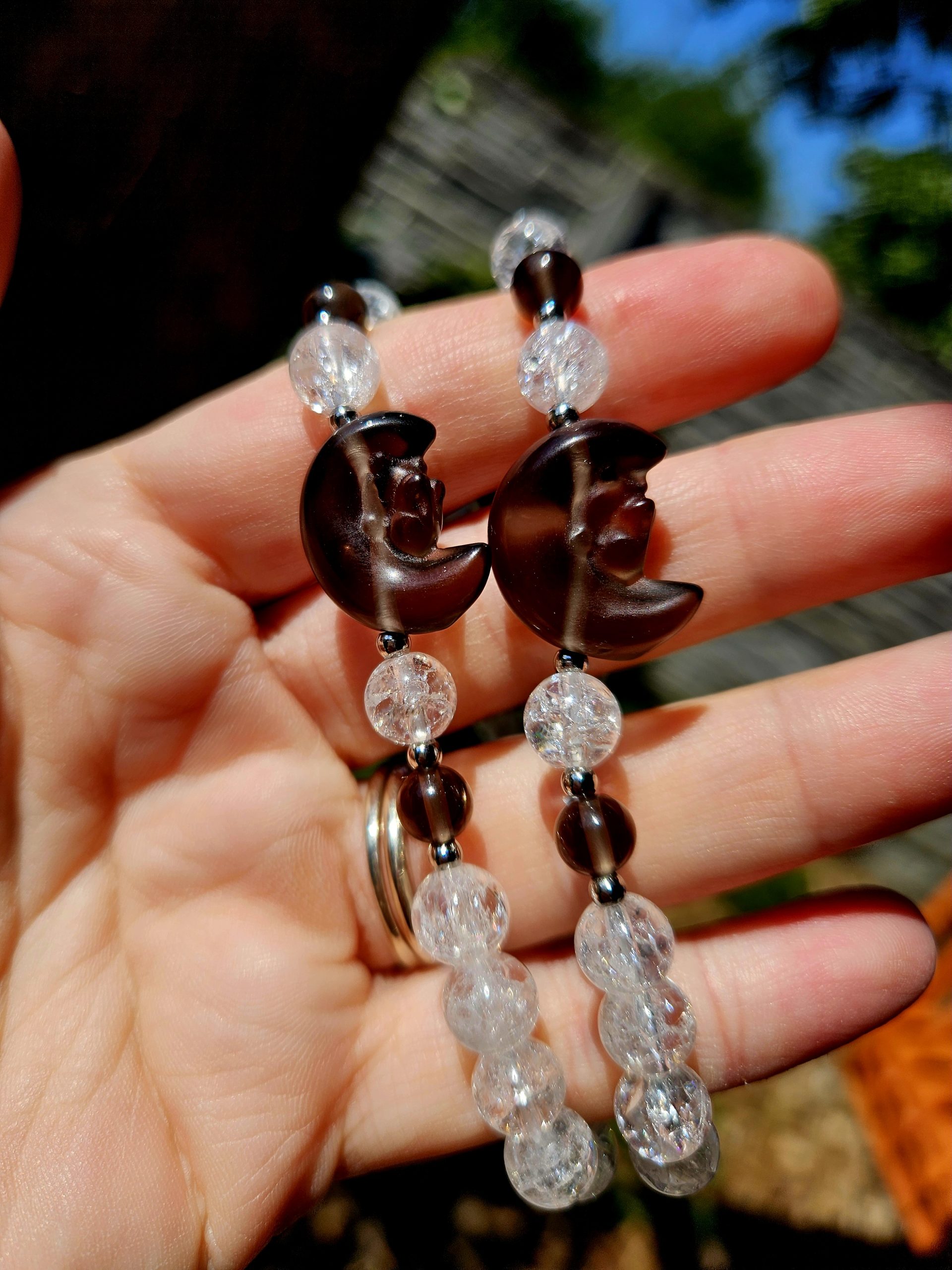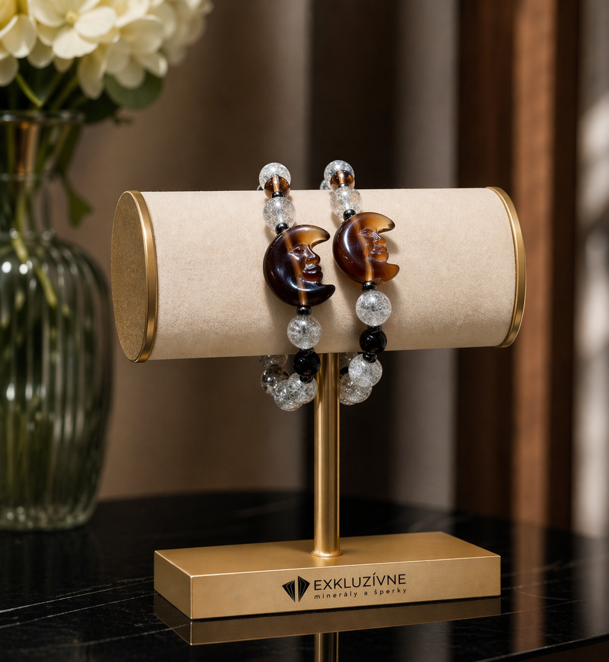 Dominantou náramku je exkluzívny vyrezávaný mesiac zo záhnedy 🌙, ktorý v sebe nesie jemnú mystiku noci, intuície a vnútorného pokoja. Každý kúsok je tak nielen šperkom, ale aj osobným talizmanom.