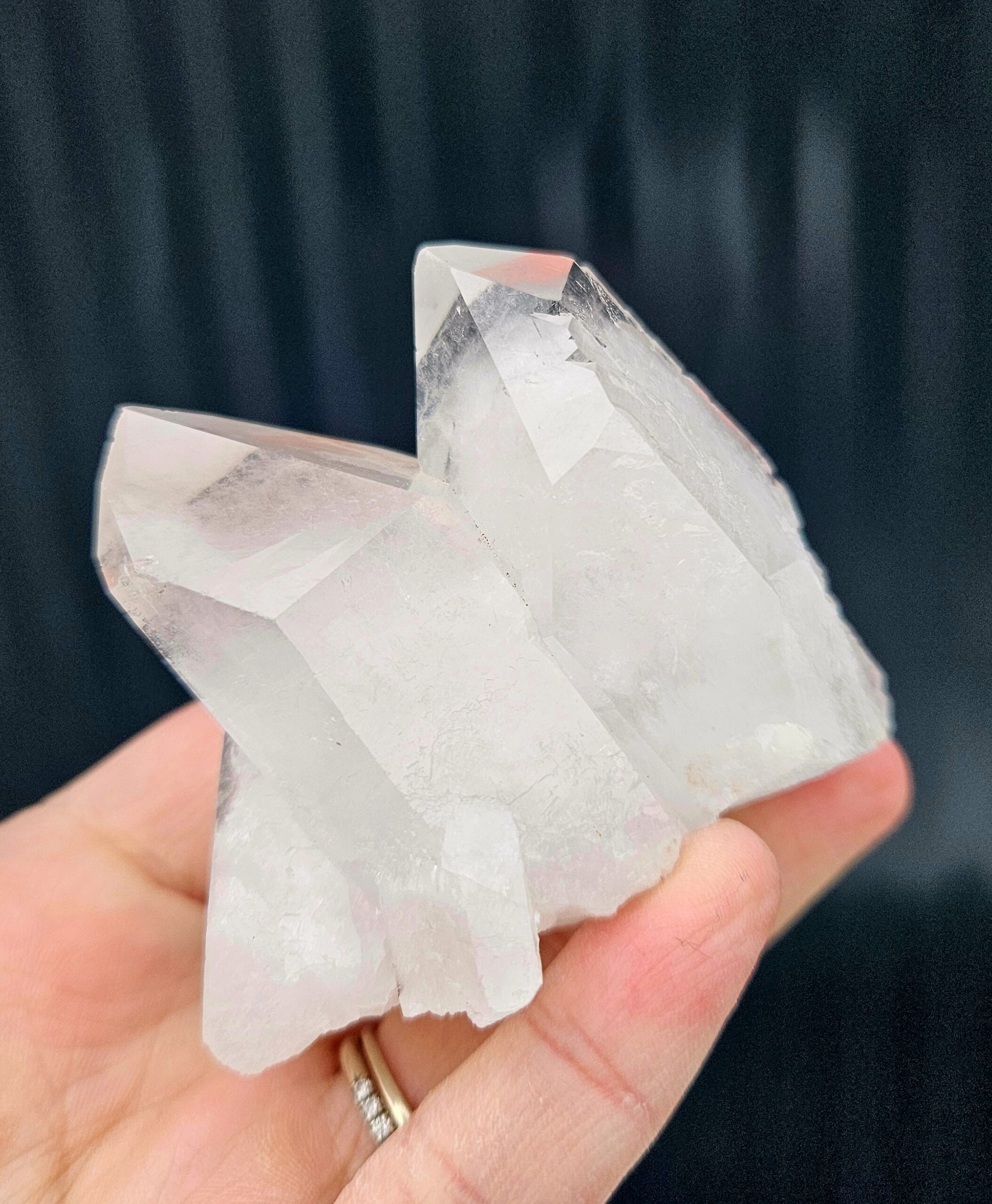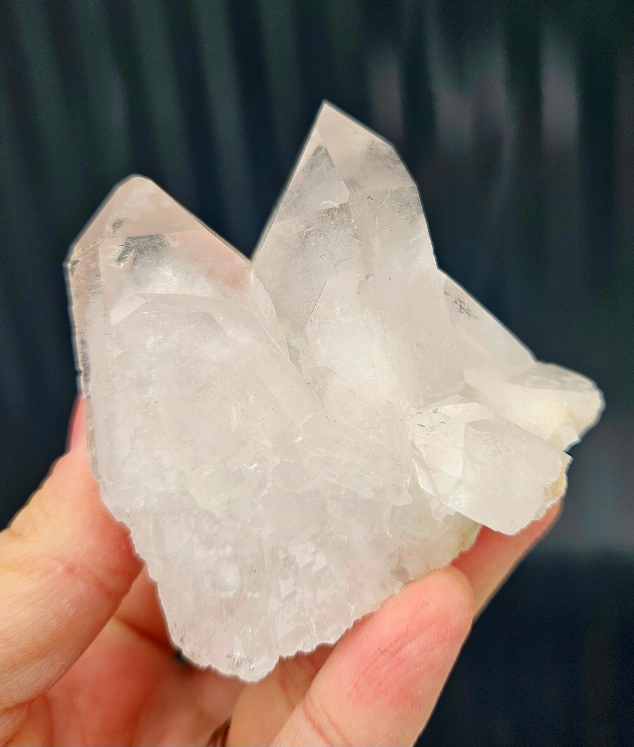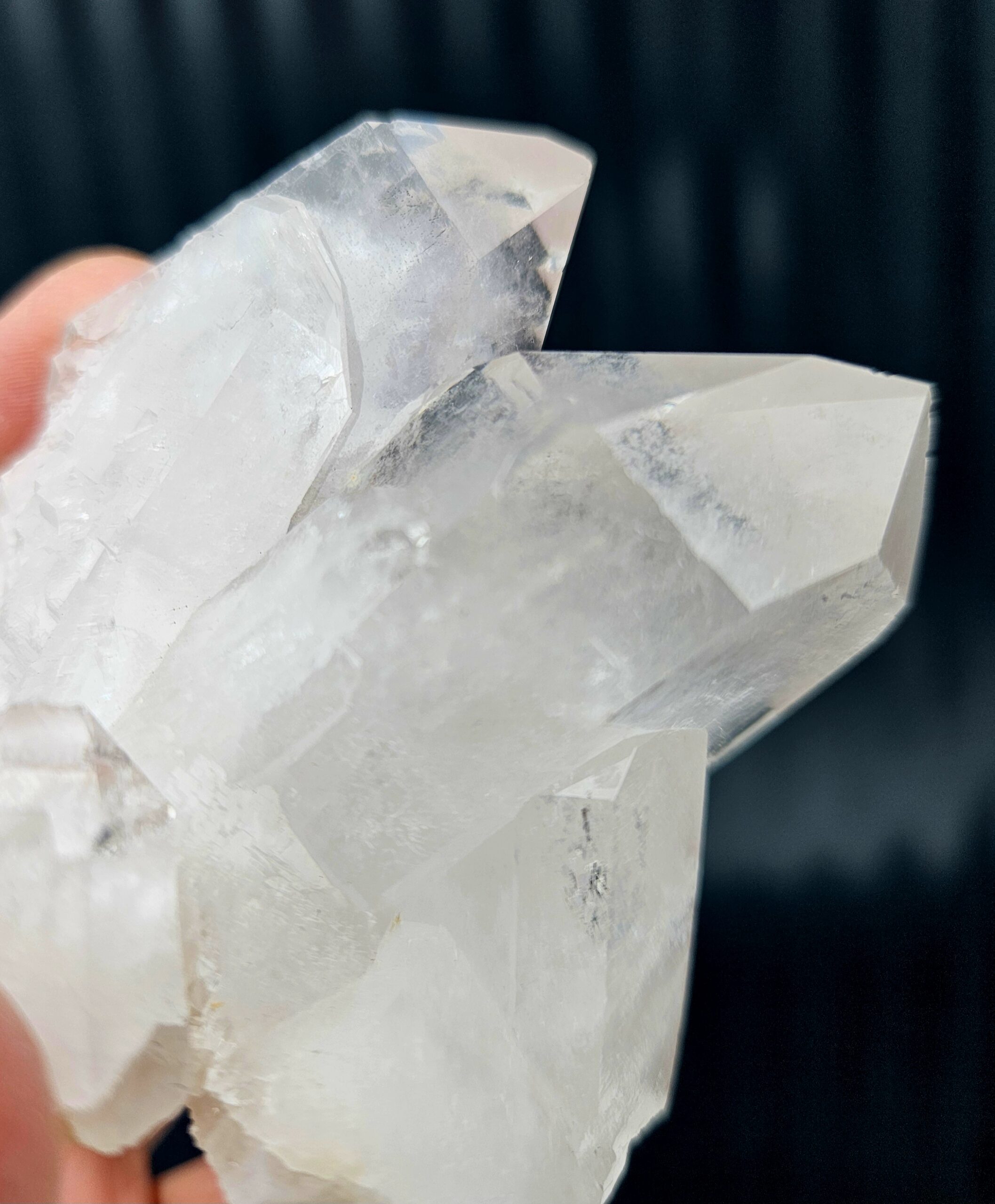 Táto krásna krištáľová drúza vyniká svojimi pevnými, elegantnými hrotmi v jemne mliečnom až polopriesvitnom prevedení. Pôsobí veľmi čisto, harmonicky a zároveň prirodzene surovo.