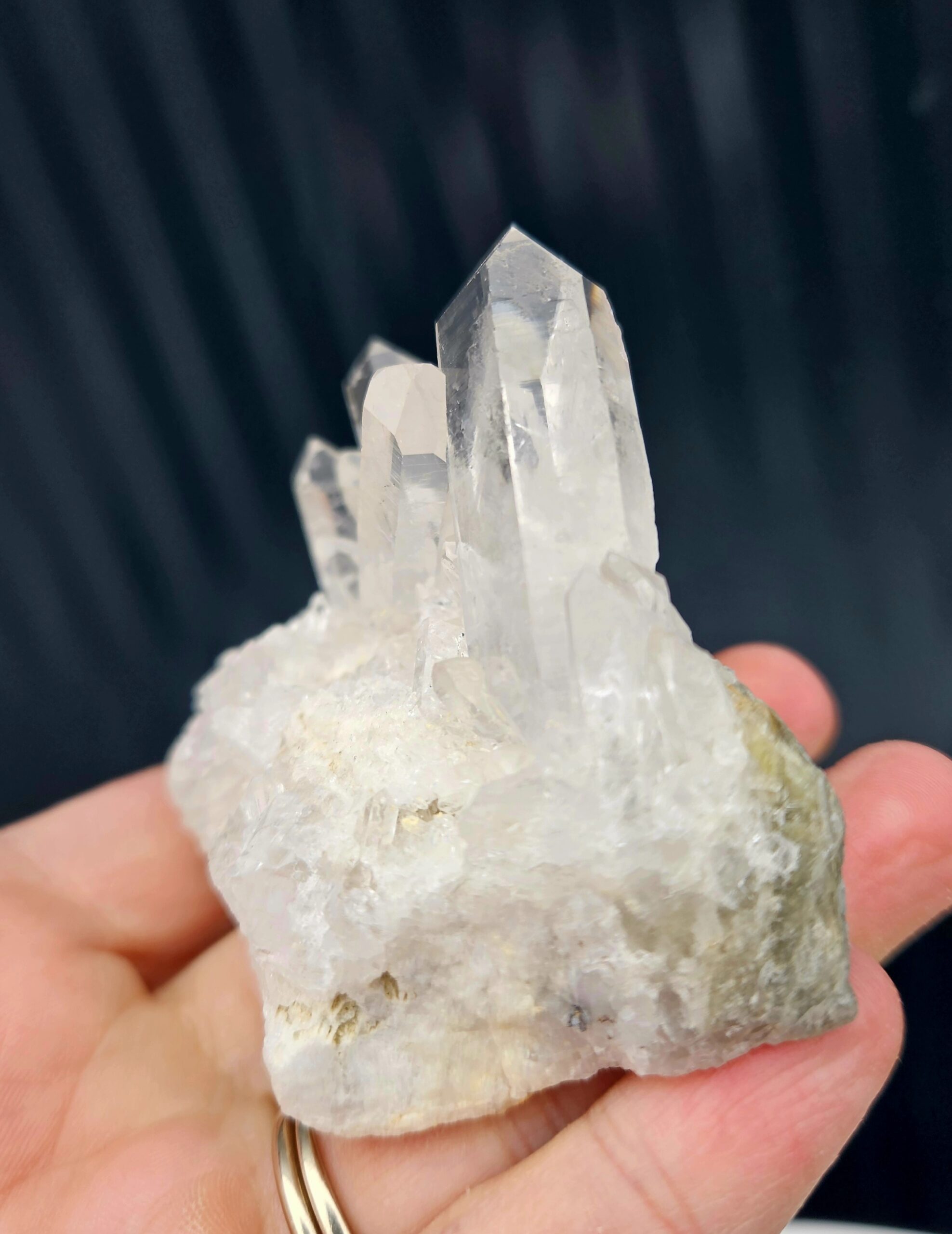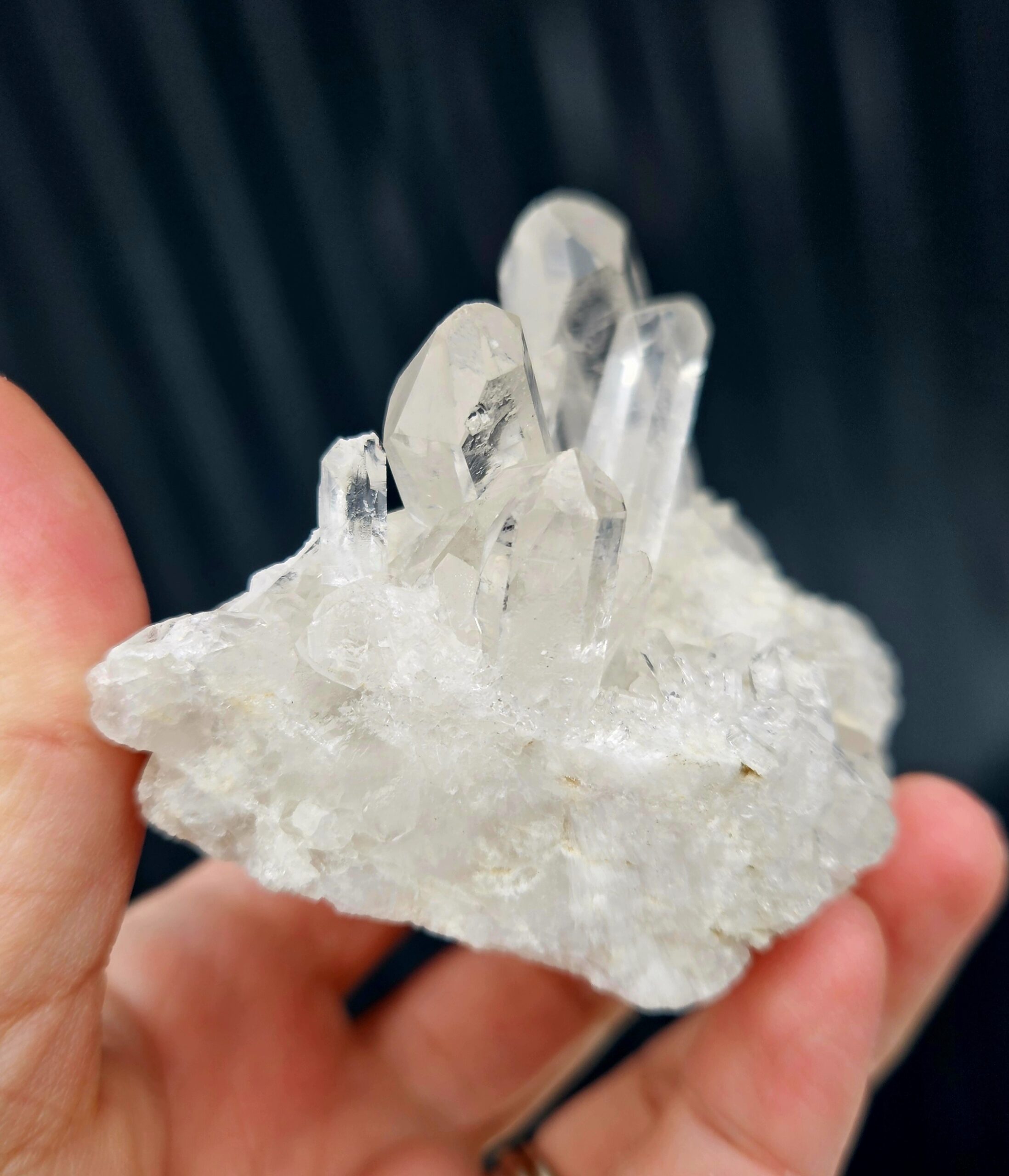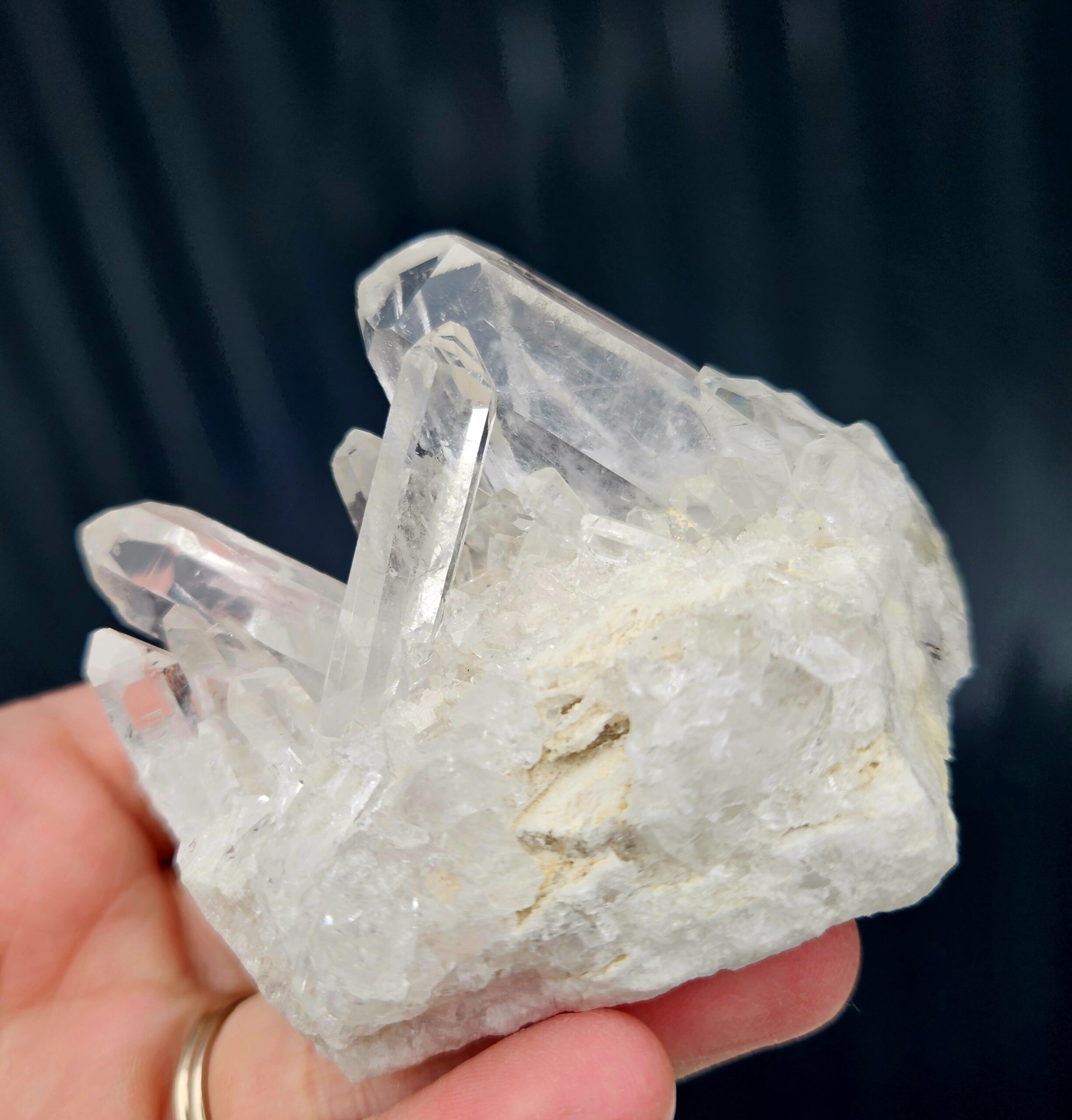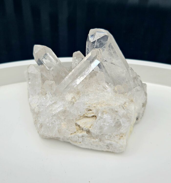 Táto nádherná krištáľová drúza vás očarí svojimi čírymi, prirodzene ukončenými hrotmi, ktoré vyrastajú z jemnej svetlej matrice. Každý kryštál zachytáva svetlo a vytvára jemné odlesky, ktoré pôsobia veľmi harmonicky a čisto.