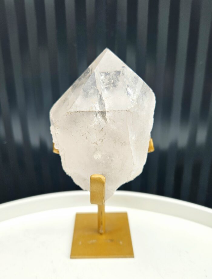 Tento nádherný krištáľ v tvare špice zaujme svojou čistotou a geometrickou dokonalosťou. Jemne priezračné telo s prirodzenými vnútornými kresbami rozpráva príbeh svojho vzniku – každá línia a inklúzia je originálom prírody.