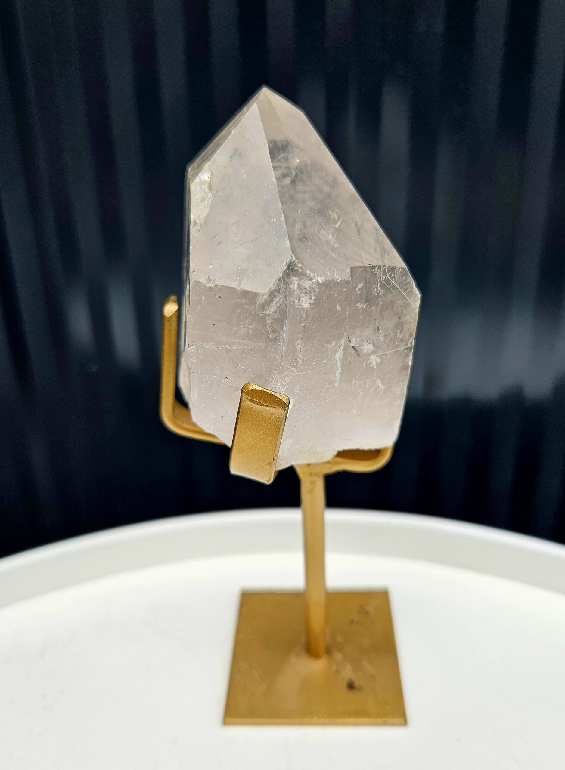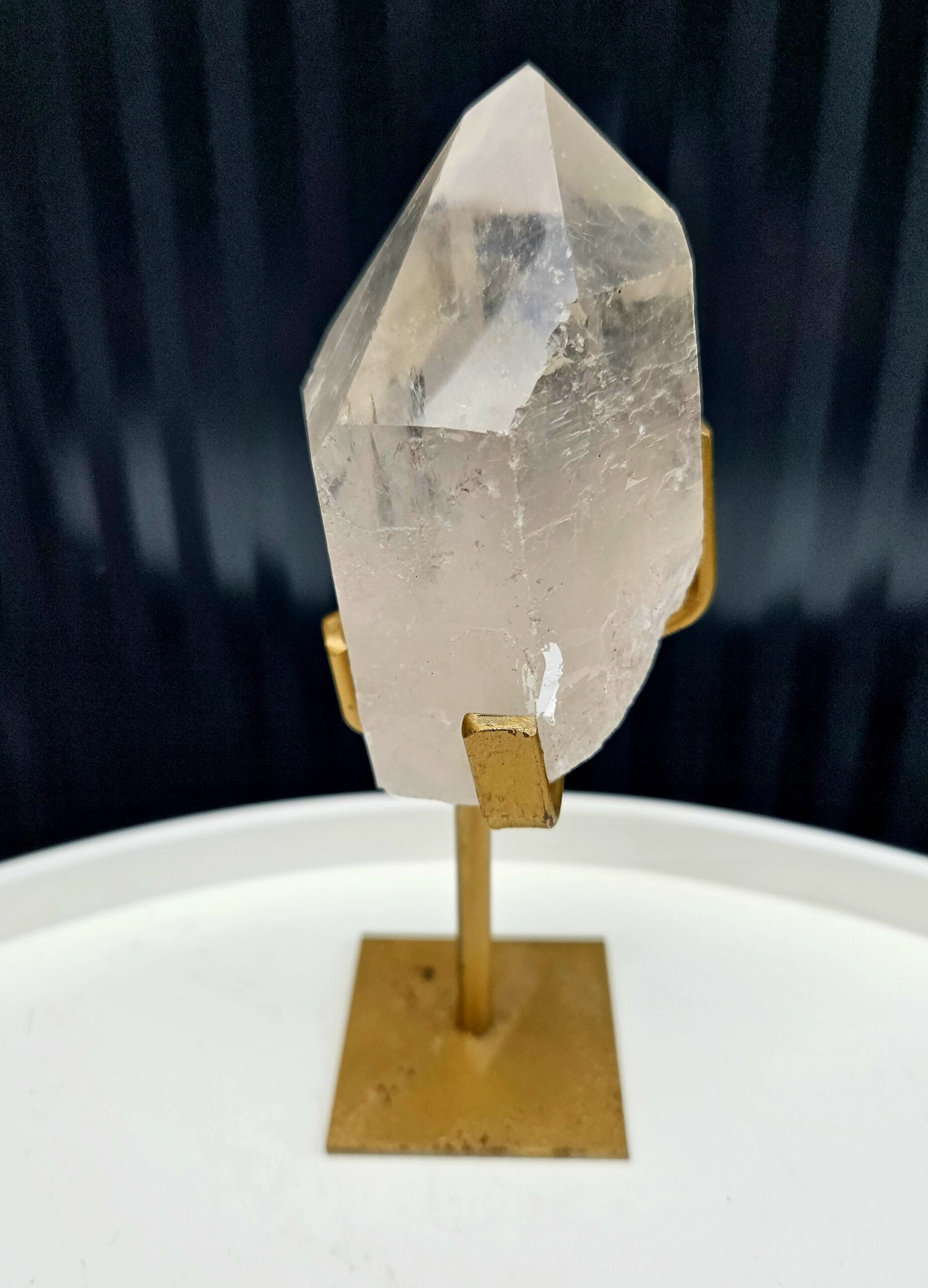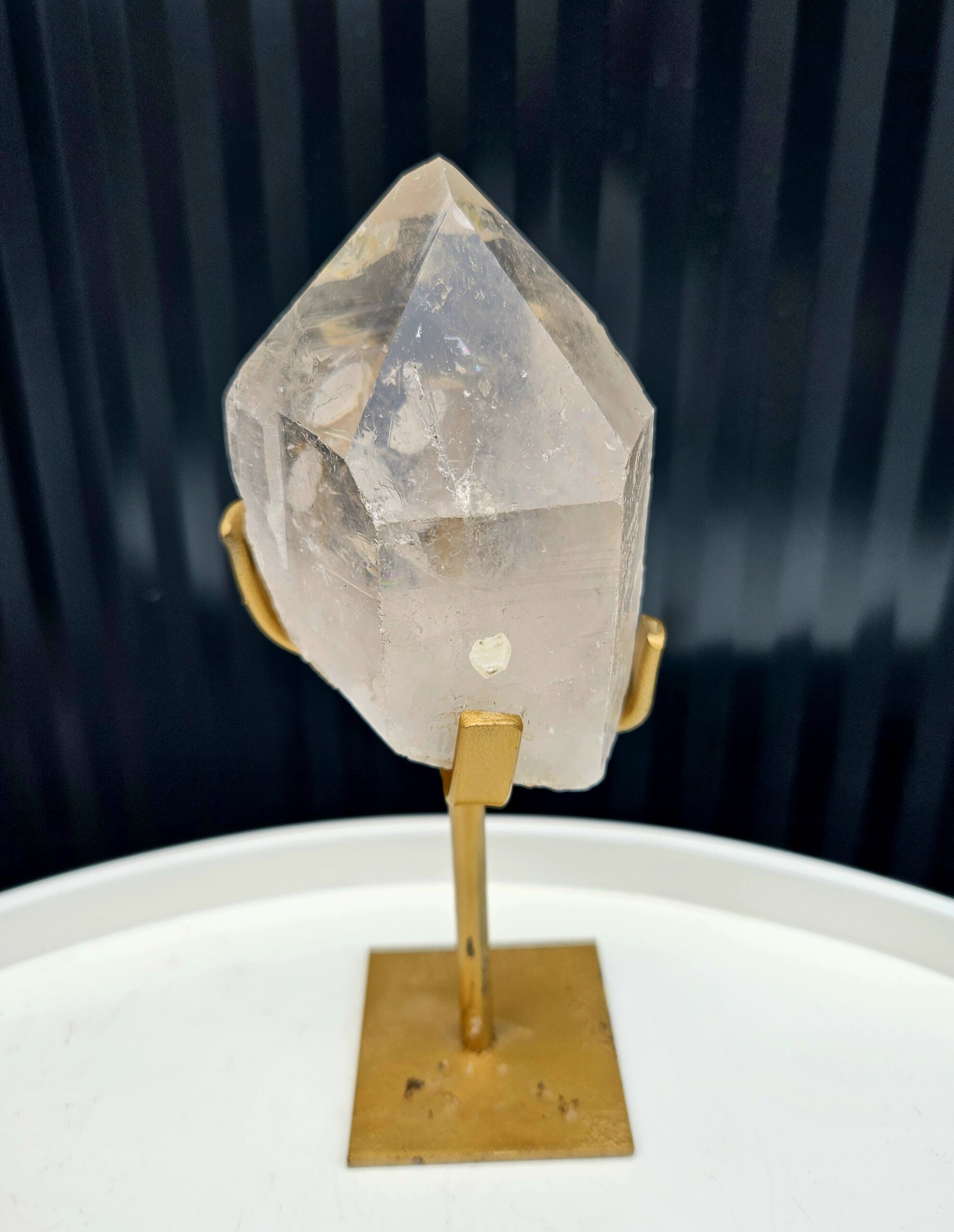 Tento krištáľový špic pôsobí harmonicky a vyvážene – jeho jemne priezračné telo s prirodzenými vnútornými štruktúrami odhaľuje krásu, ktorú dokáže vytvoriť len príroda. Precízne ukončený hrot dodáva kameňu silu a smer, zatiaľ čo jeho jemné zákaly a inklúzie mu dávajú jedinečný charakter.