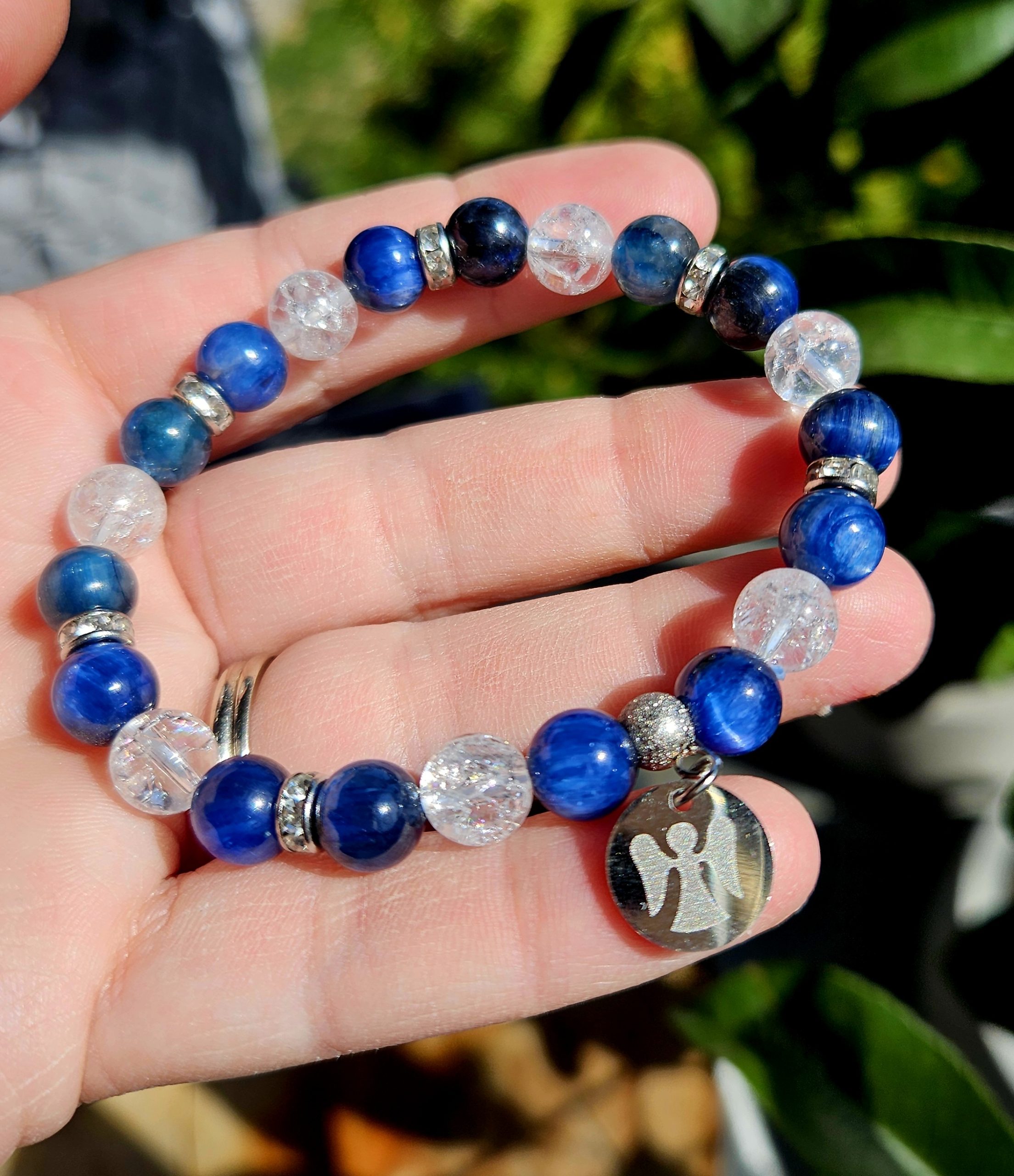Kyanit – Disten + Krištáľ náramok 8mm Anjelik