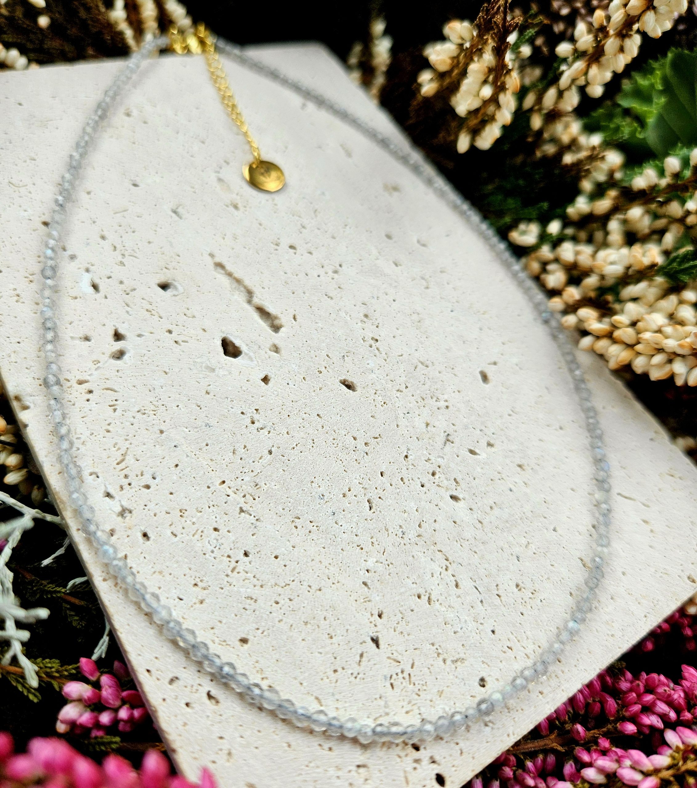 Labradorit náhrdelník 2mm fazetovaný zlatý