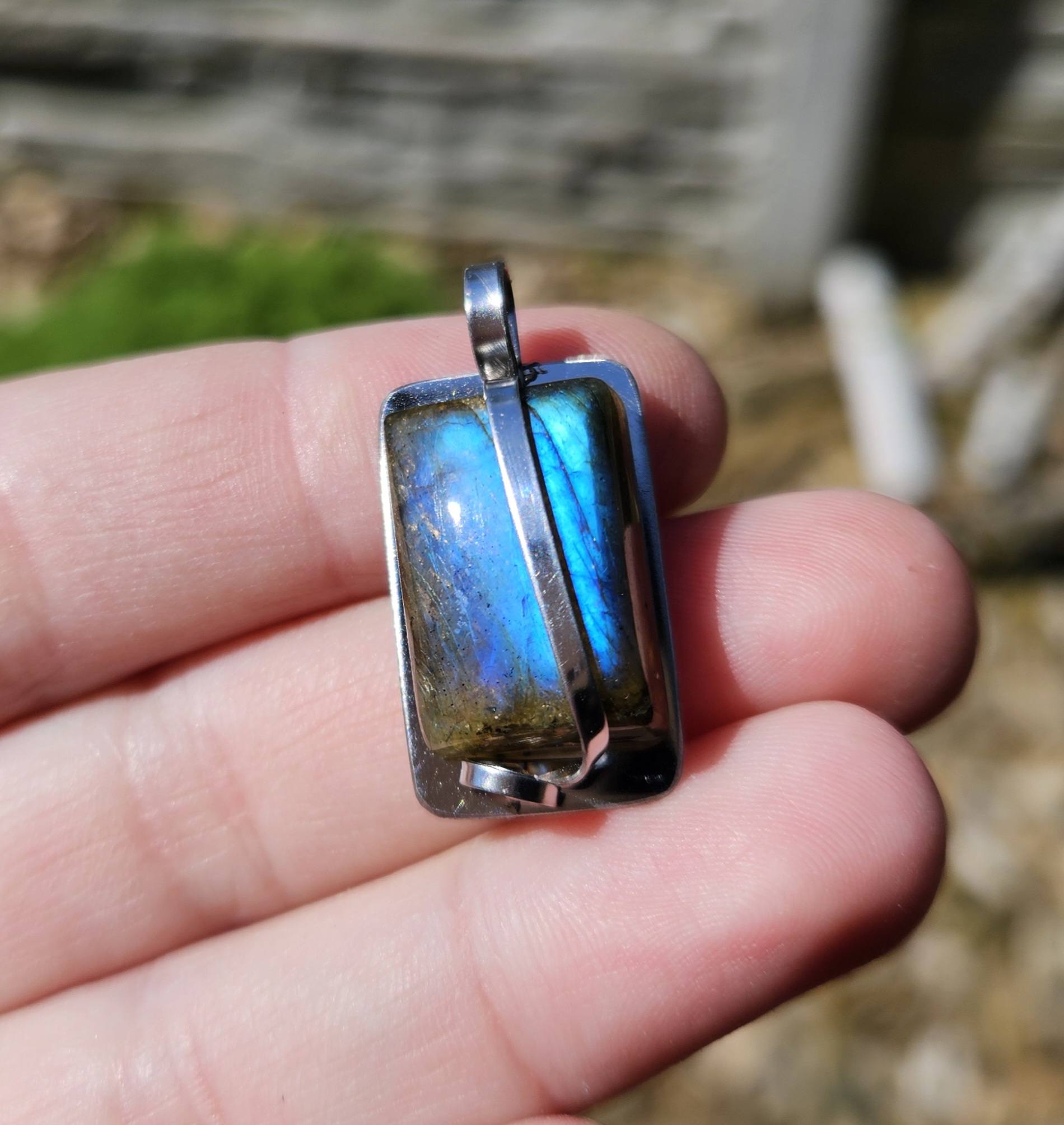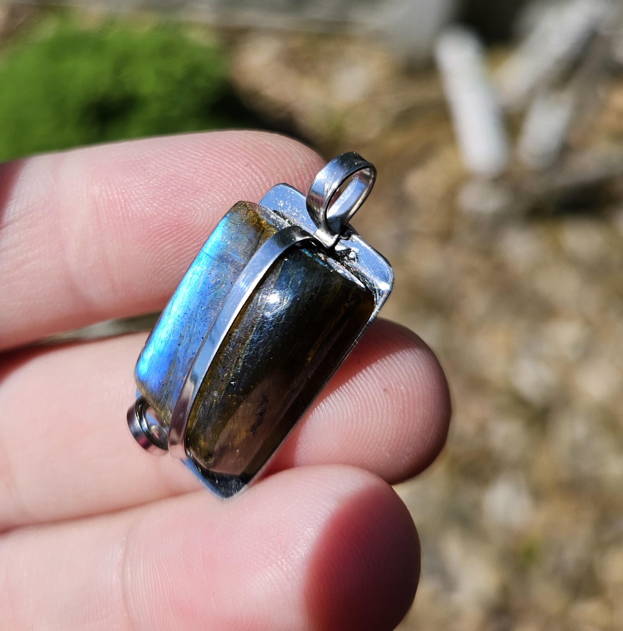 Labradorit prívesok na platničke z chir.ocele č.2