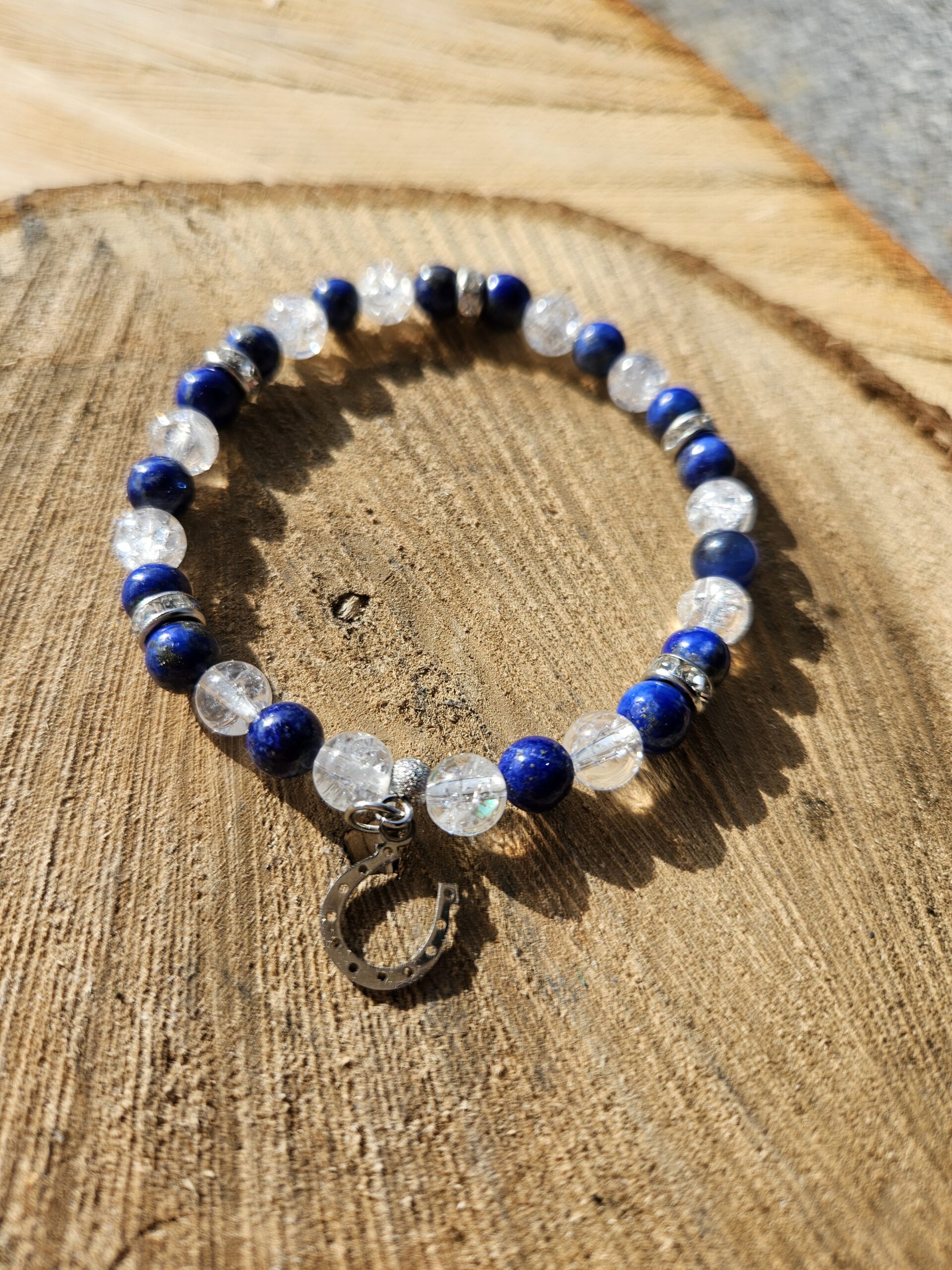Lapis Lazuli + Krištáľ náramok 6mm Podkova