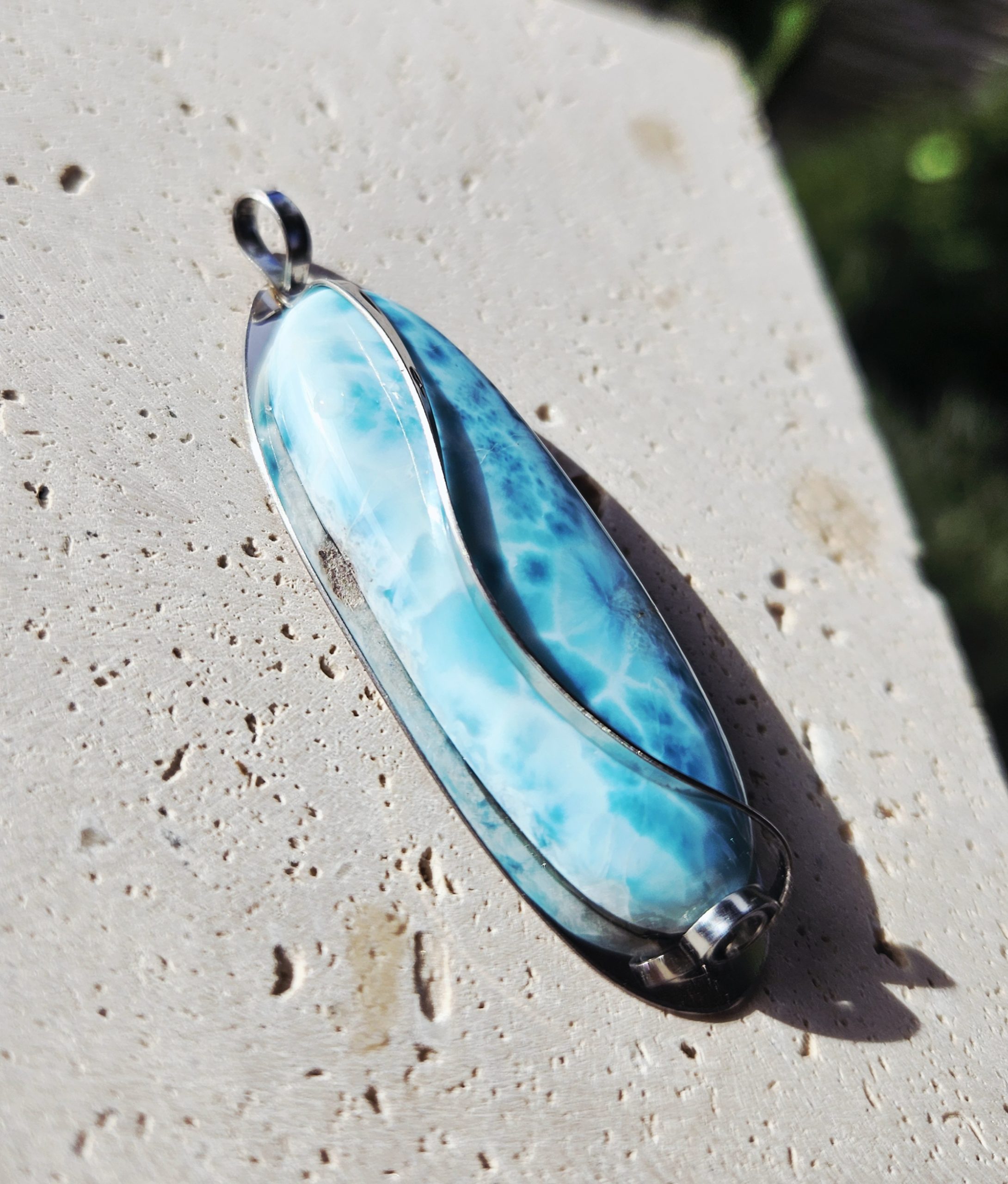 Larimar prívesok na platničke z chir.ocele