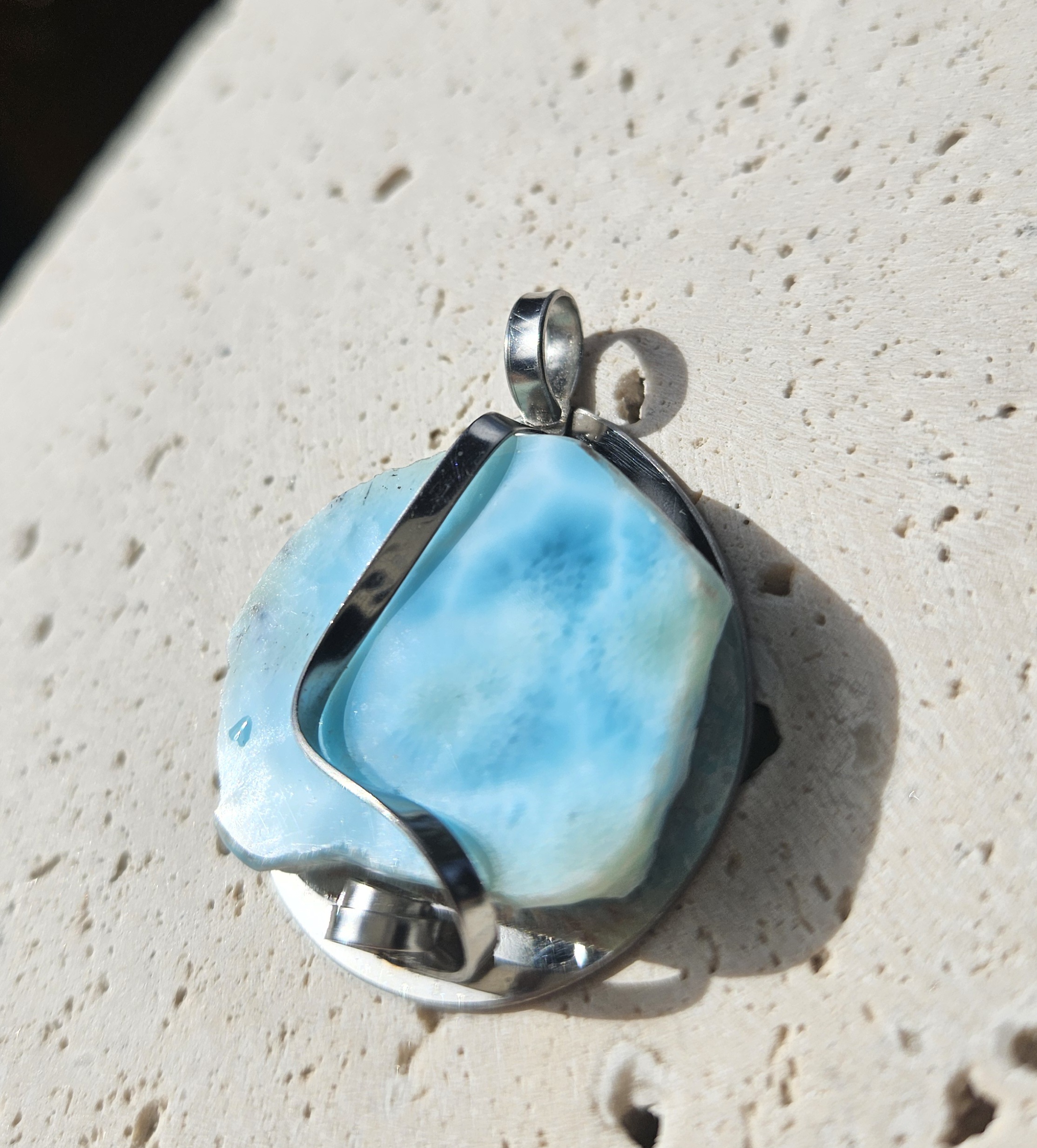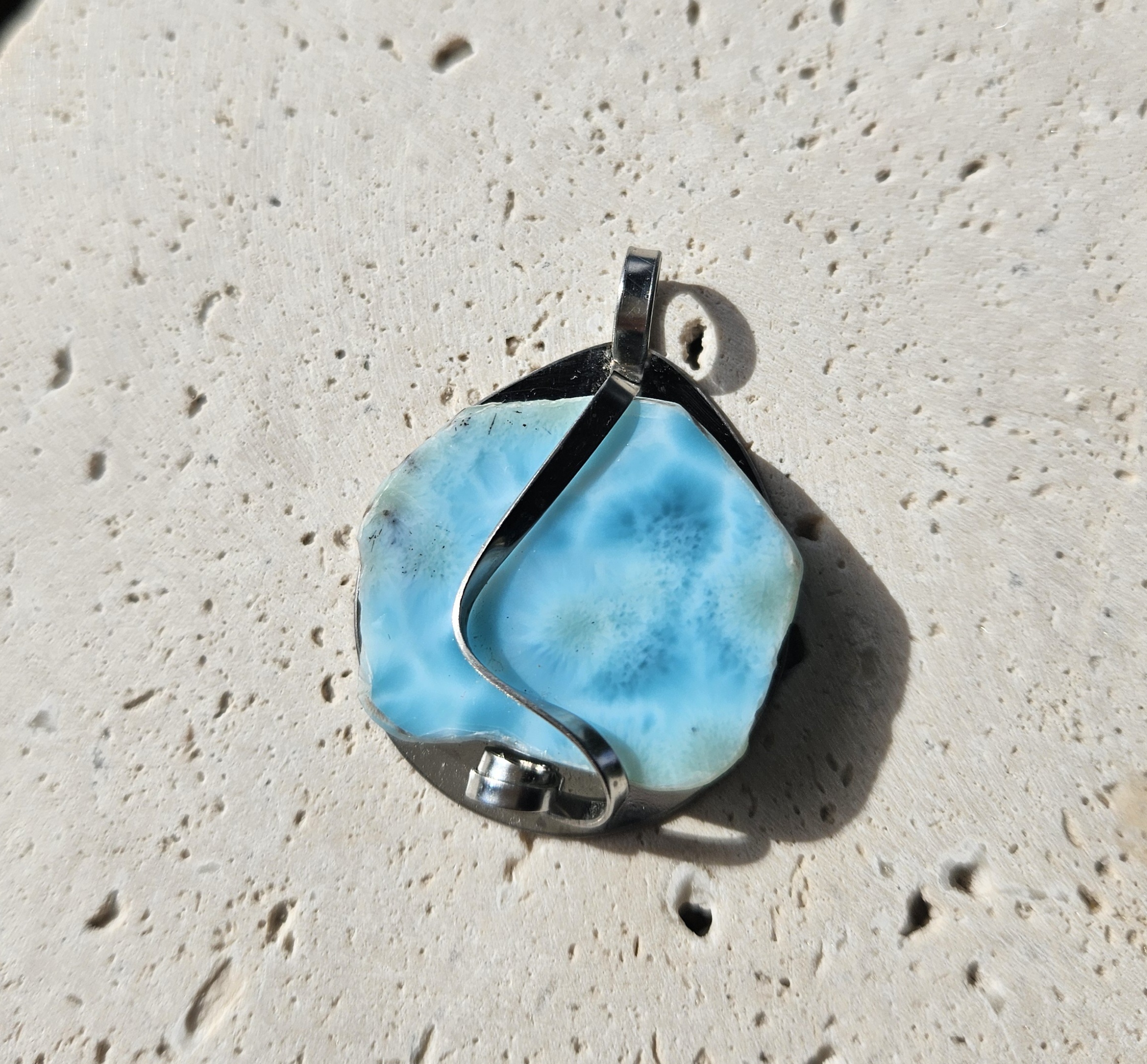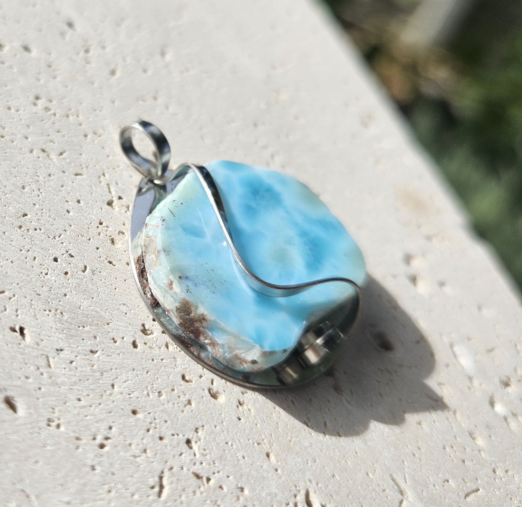 Larimar (surový) prívesok na platničke z chir.ocele