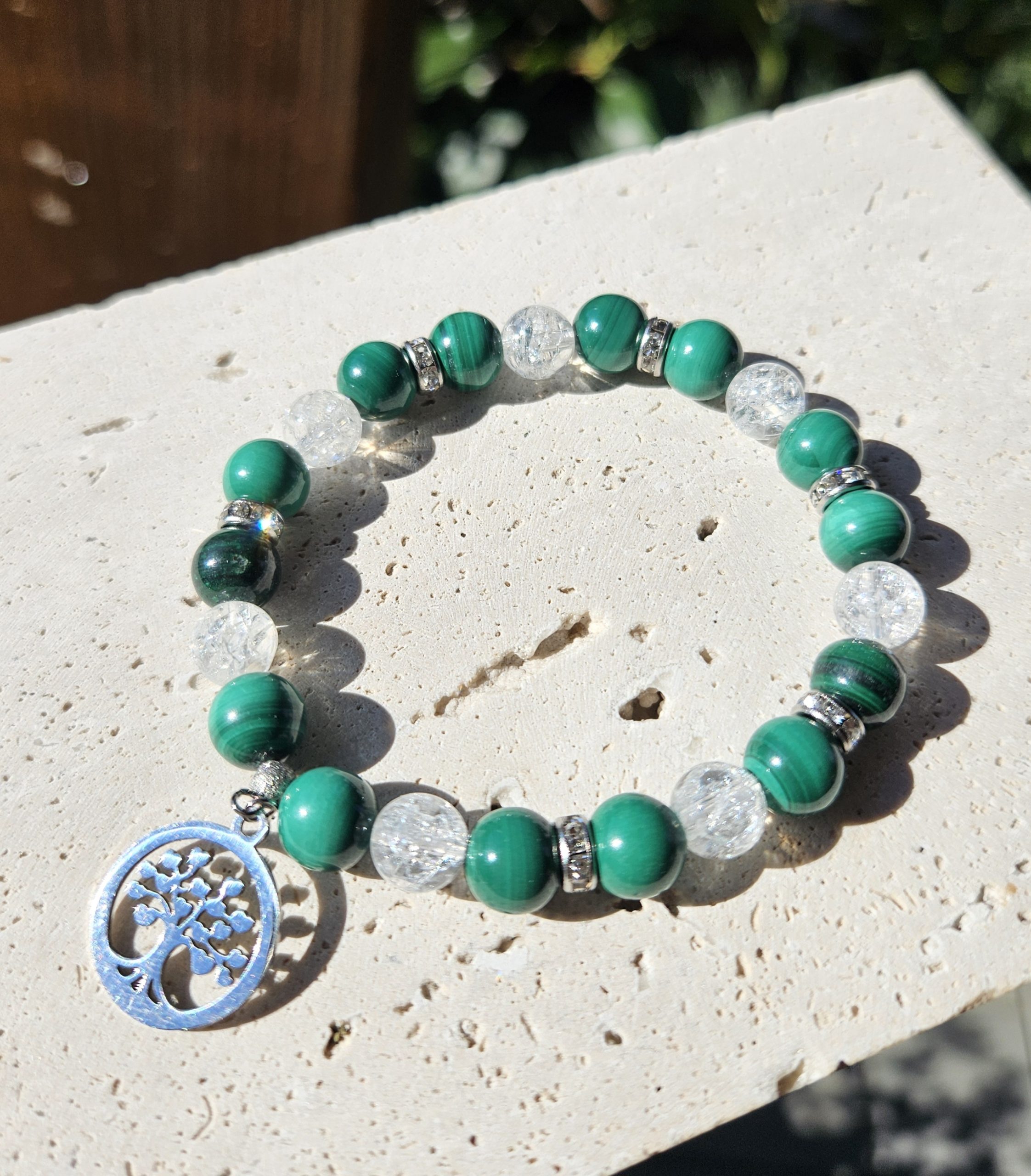 Malachit + Krištáľ náramok 8mm Strom života
