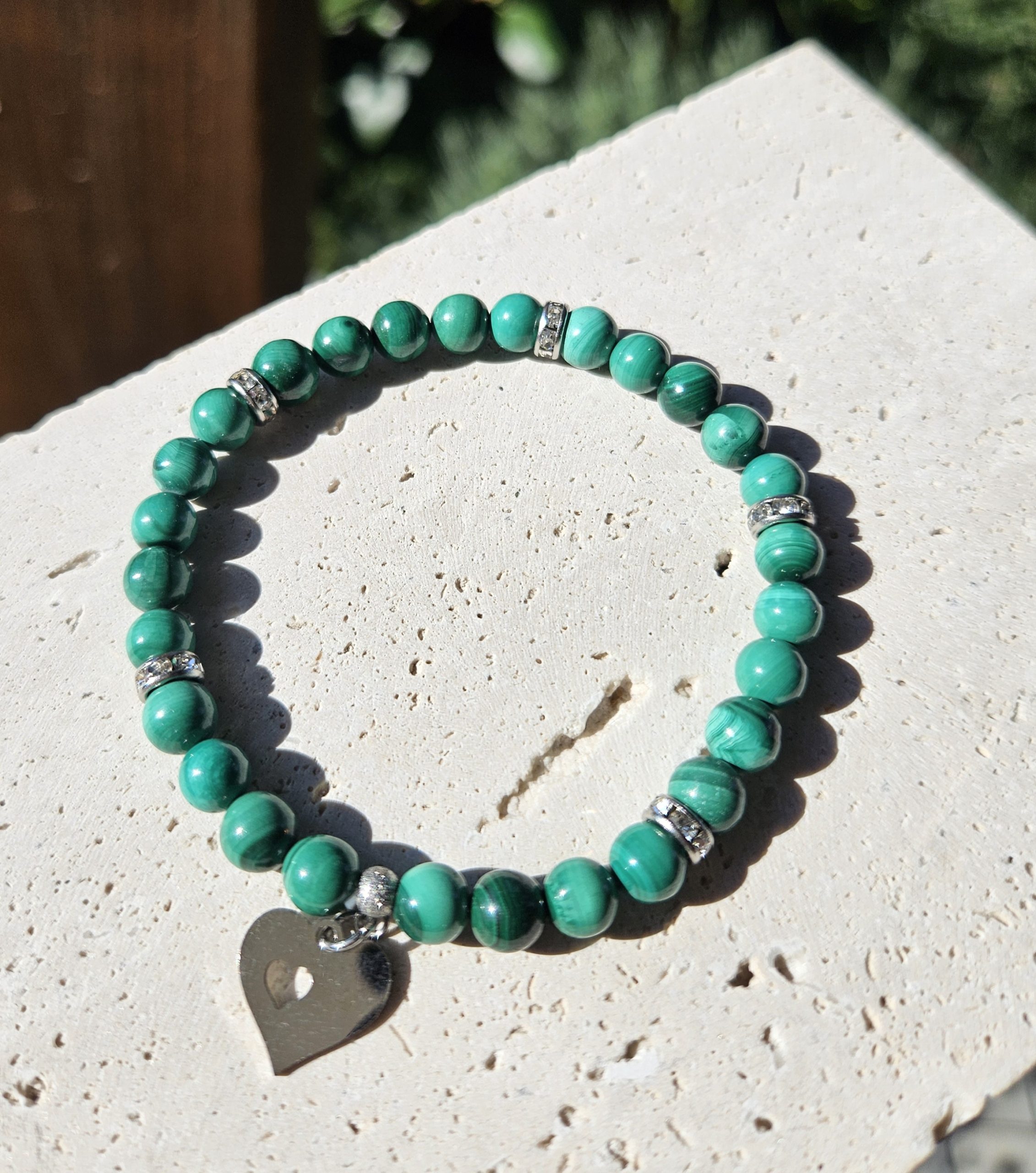 Malachit náramok 6mm Srdiečko