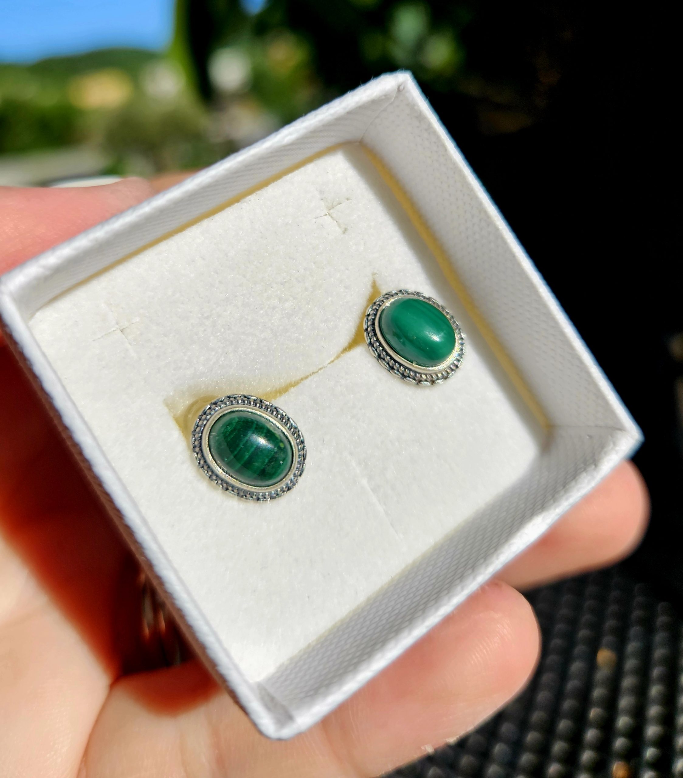 Malachit náušnice – napichovacie S925