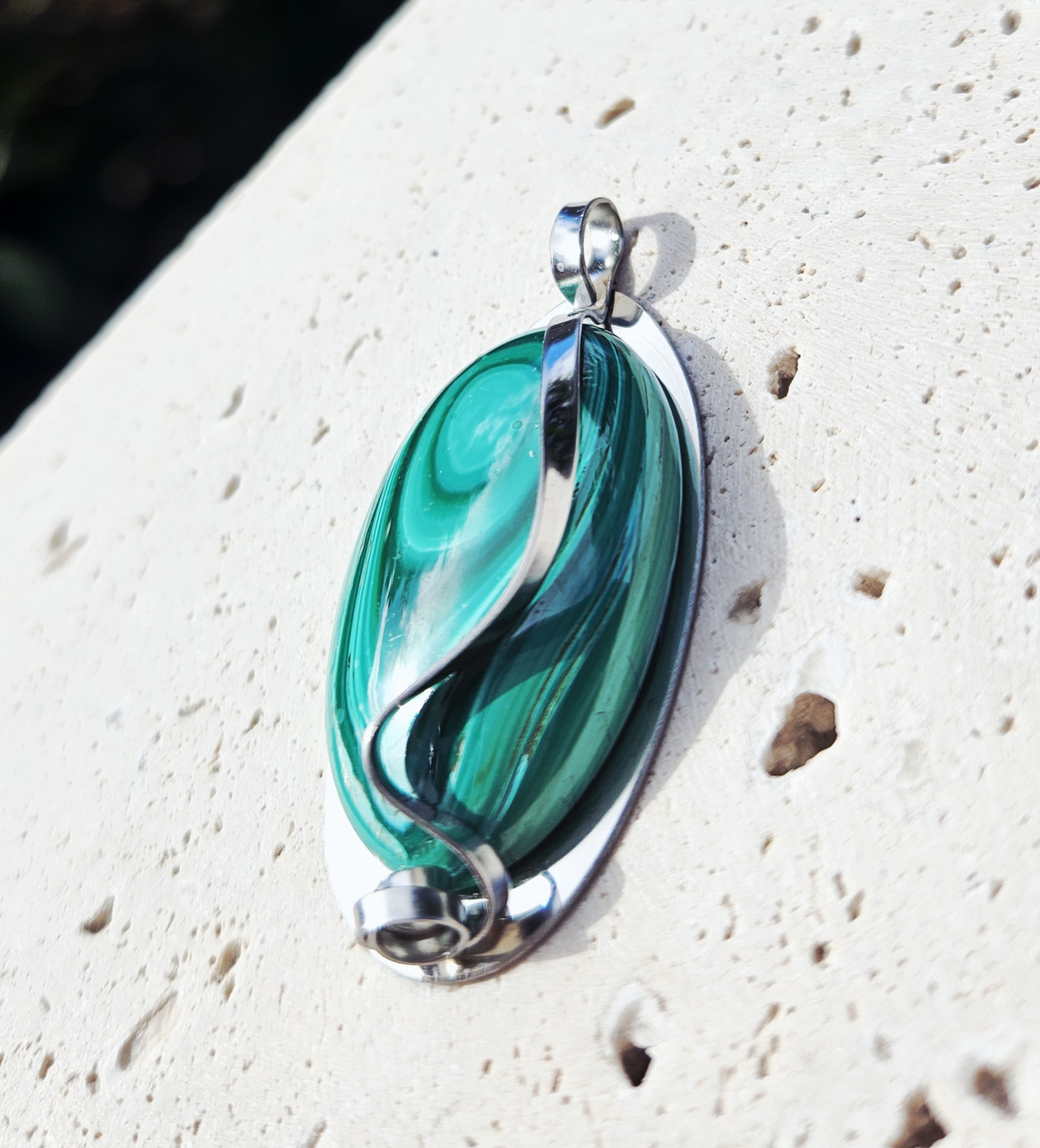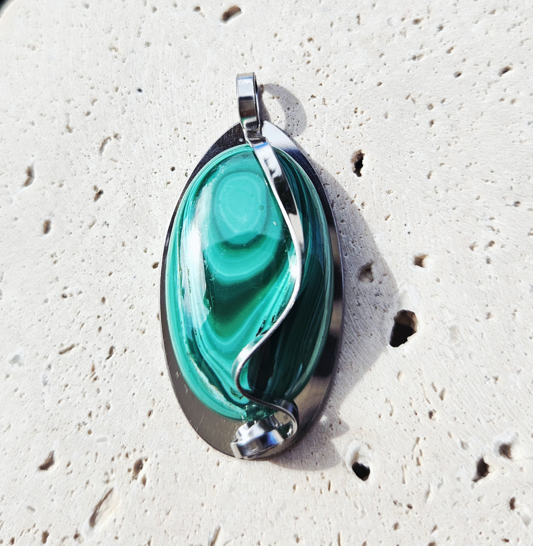 Malachit prívesok na platničke z chirurgickej ocele