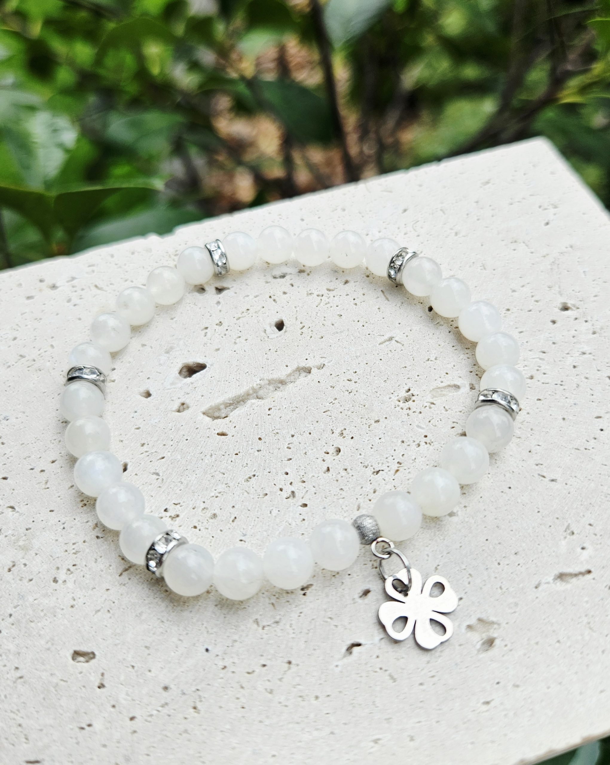 Mesačný kameň – Adulár náramok 6mm štvorlístok